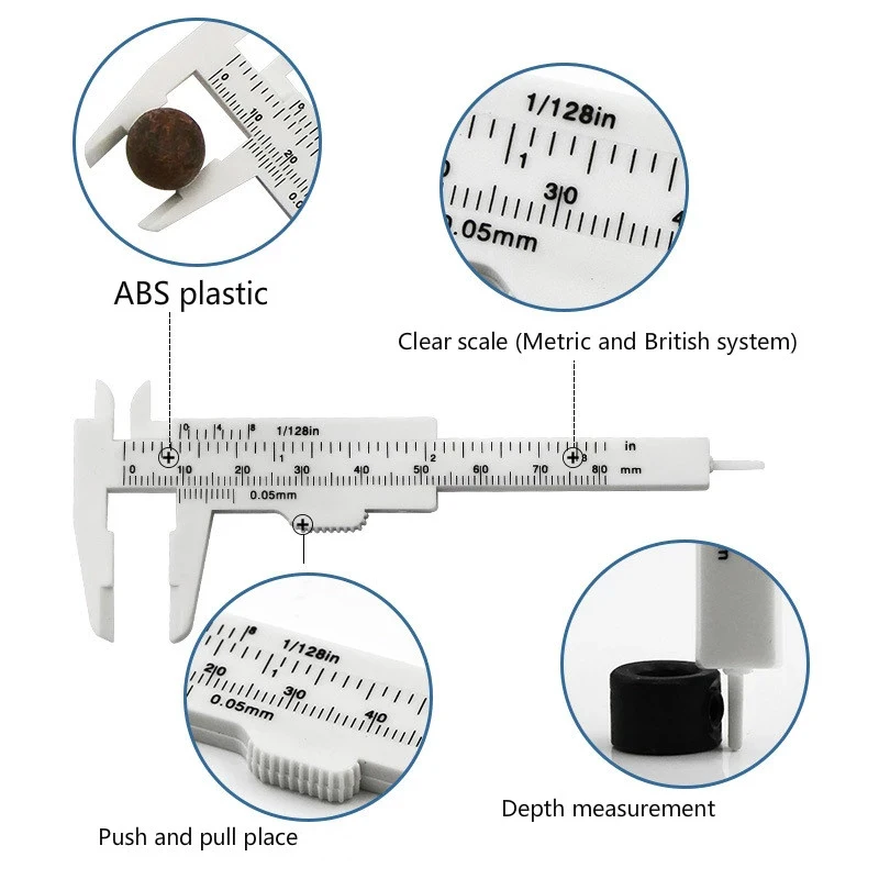 Мини-штангенциркуль 80 мм с двойной шкалой, Пластиковый штангенцирк...
