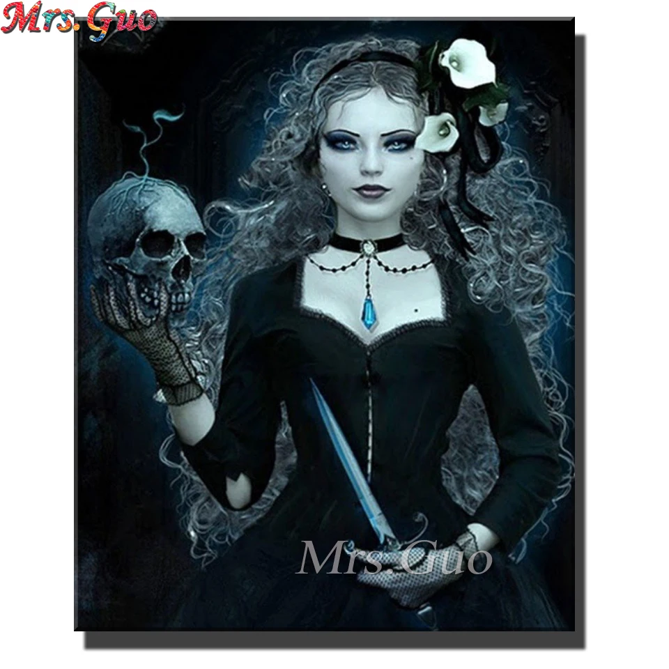 Полностью квадратная Алмазная картина Темный Wicca с черепом 5d Вышивка Готическая Женская Ручная работа домашний декор вышивка крестиком подарок на Хэллоуин