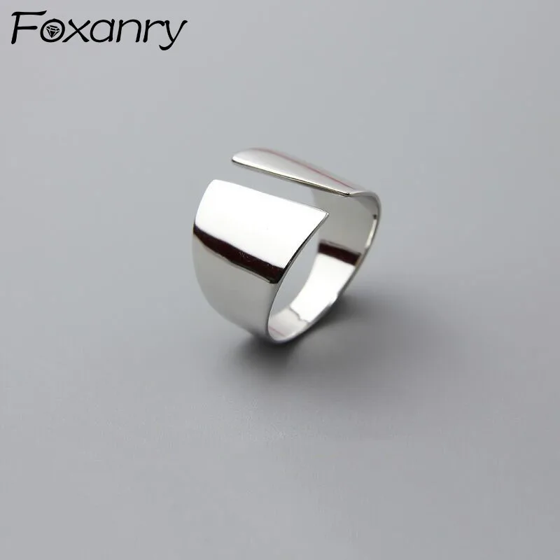925 широкие кольца FOXANRY в минималистичном стиле, винтажные аксессуары, Новые Модные Элегантные гладкие геометрические украшения для дня рождения
