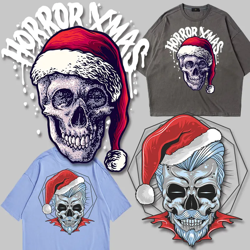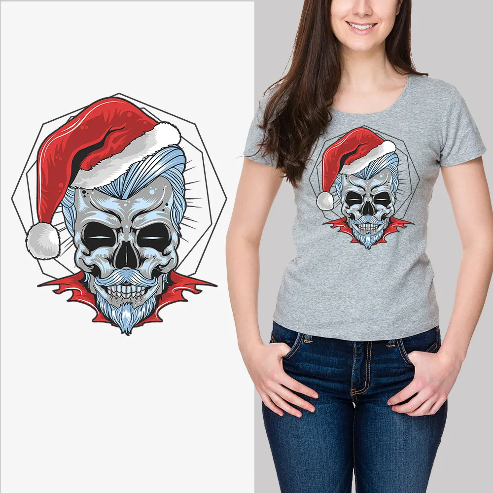 Аппликация в виде рождественской шапки с черепом, наклейки для глажки одежды, термочувствительные нашивки, термопереводные наклейки из ПВХ