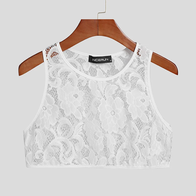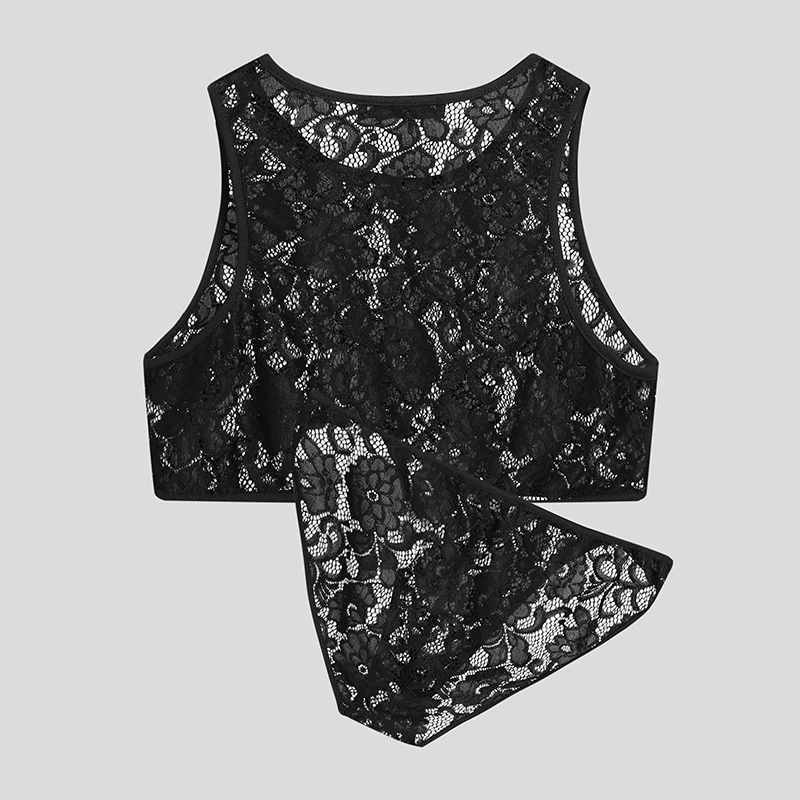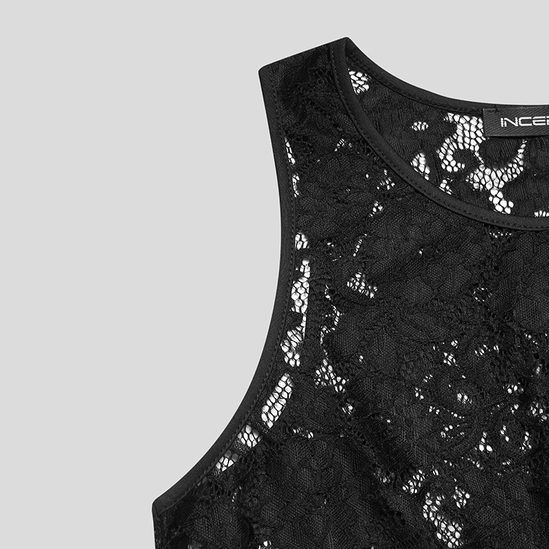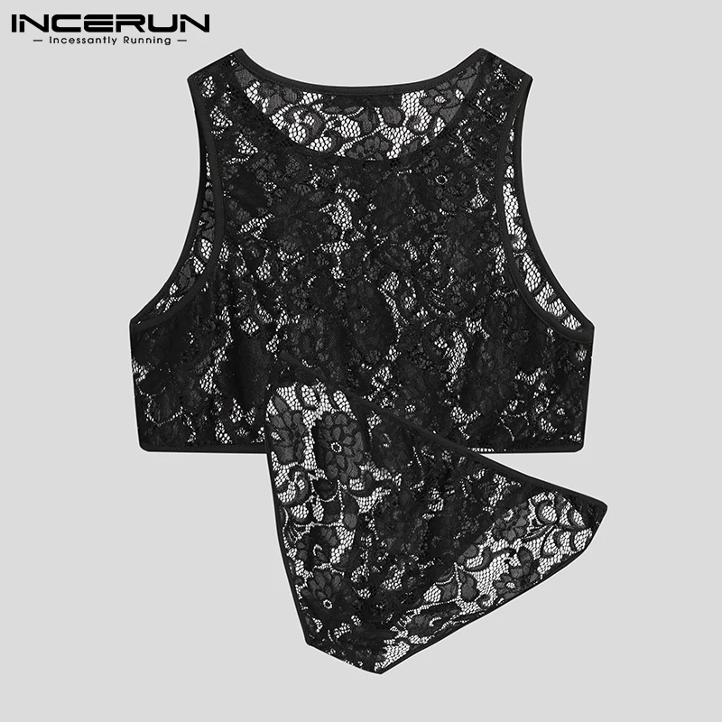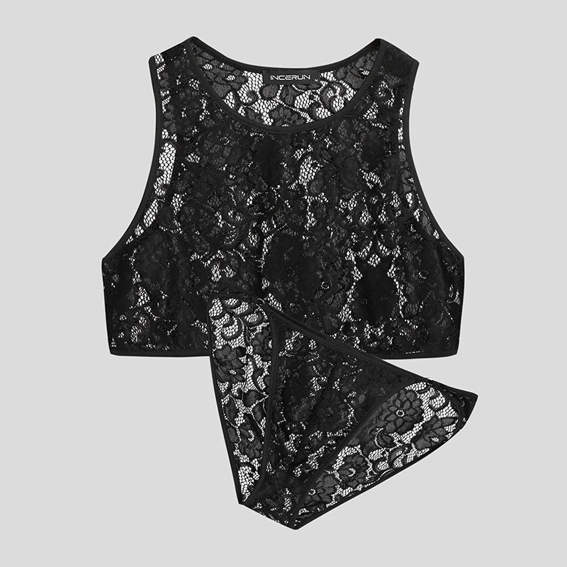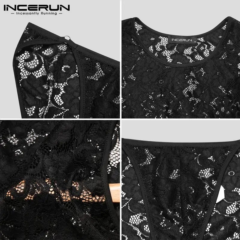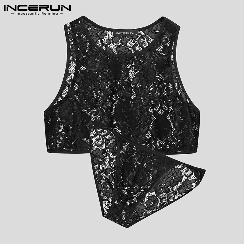 INCERUN Женская сетчатая Прозрачная Кружевная Домашняя одежда с круглым вырезом без рукавов топы и трусики 2022 Сексуальная мужская пижама костюмы