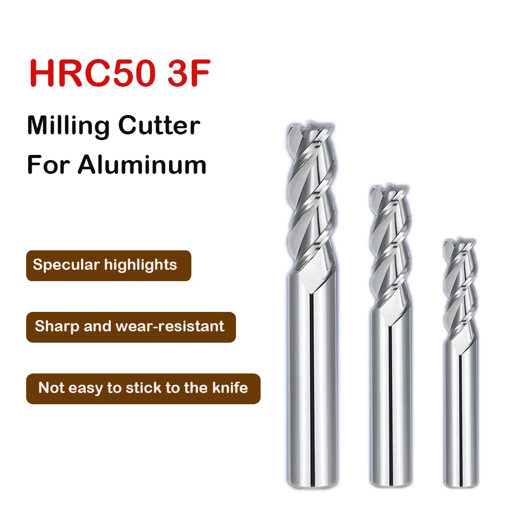Фрезы с 3 канавками HRC50, насадки для токарного станка из вольфрамовой стали с покрытием из алюминиевого сплава, 4 мм, 6 мм, 8 мм, 10 мм