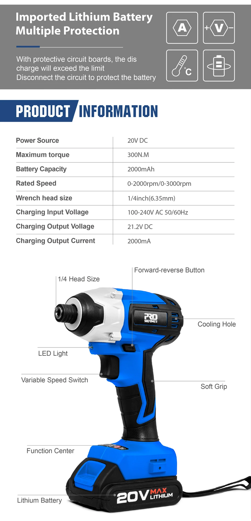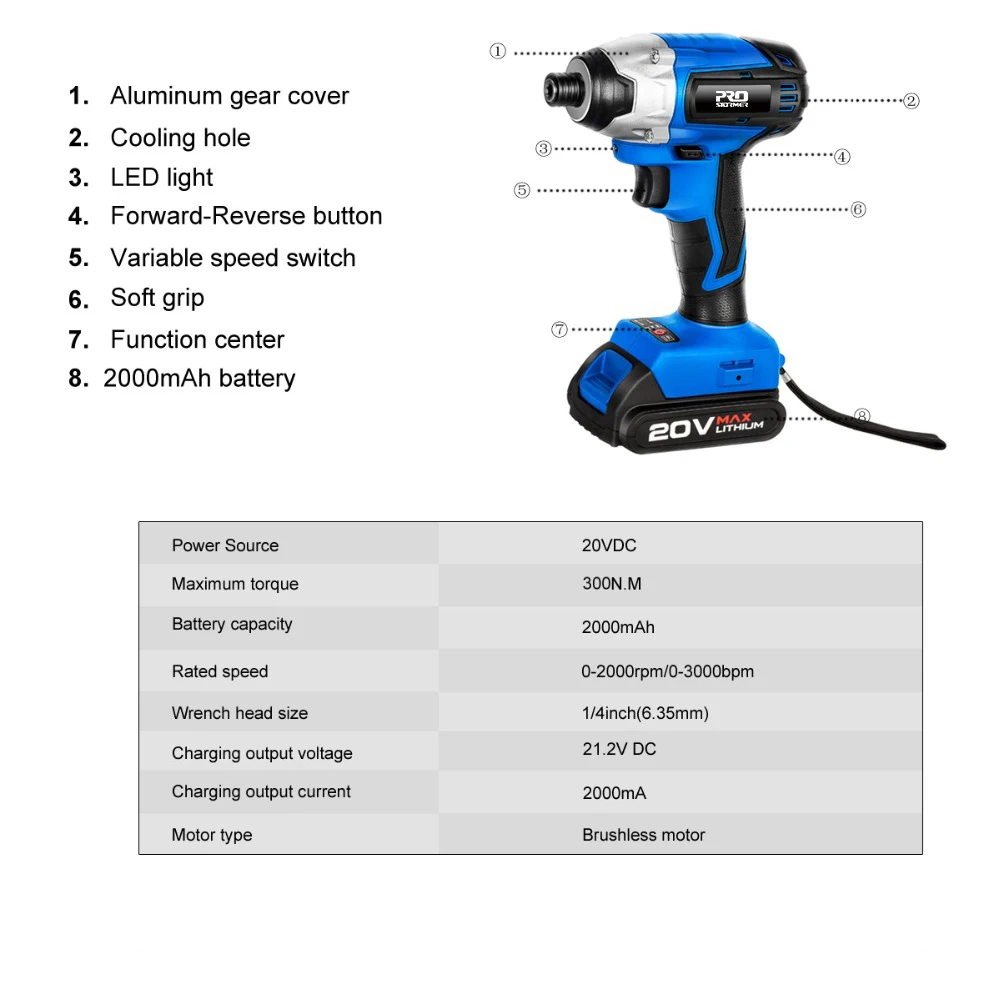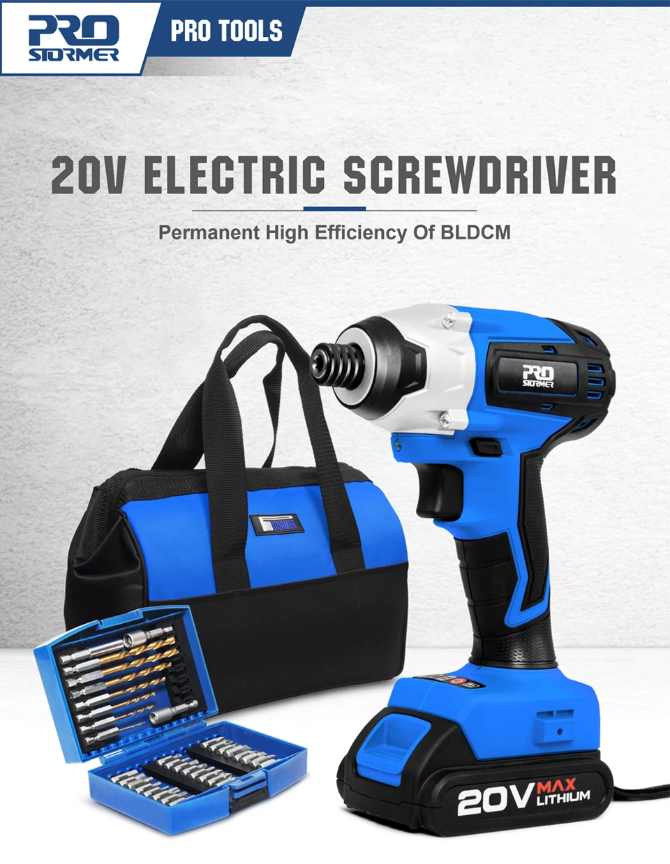 Дрель-шуруповерт PROSTORMER аккумуляторная, 300 нм, 20 в, 34 шт.