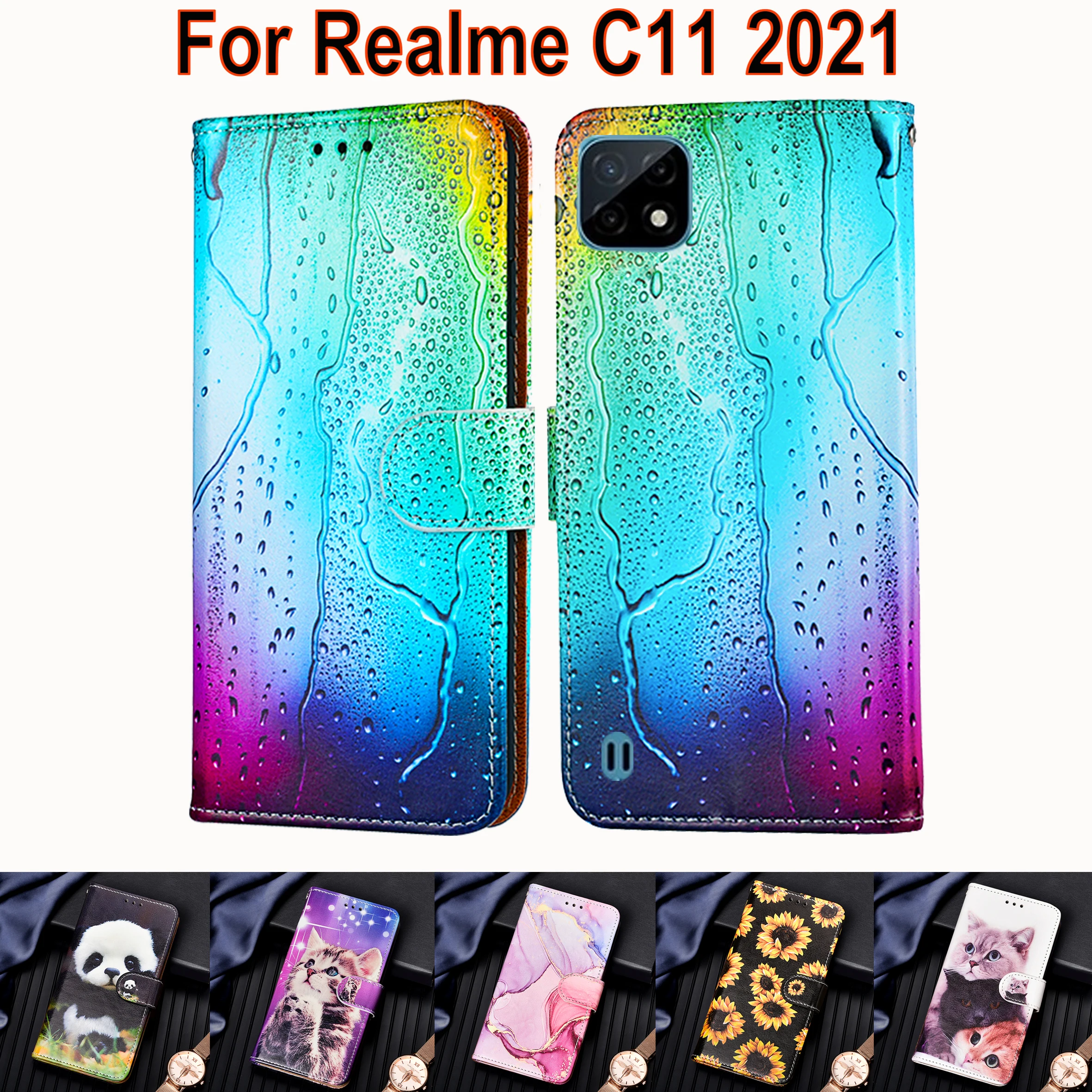 Чехол-бумажник для Realme C11 2021, кожаный чехол-книжка с откидной...