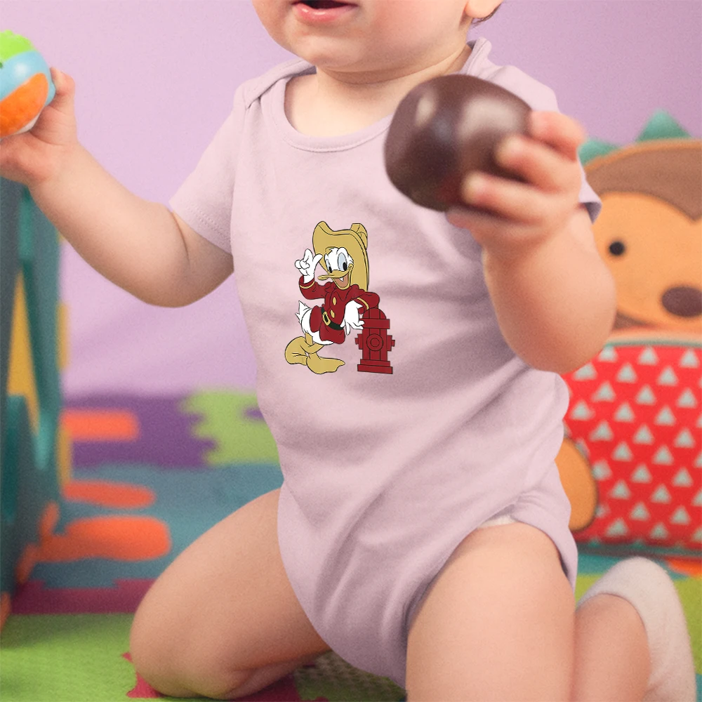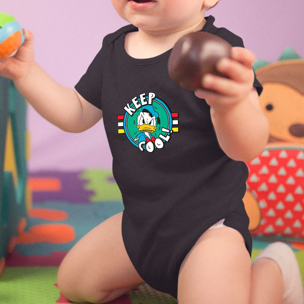 Комбинезон для малышей Four Seasons Disney, новые летние товары с круглым вырезом и коротким рукавом, удобный Дональд Дак, мультяшный принт, Harajuku
