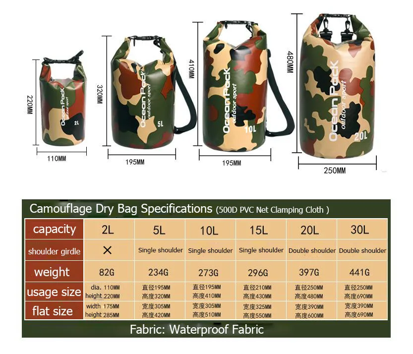Сумка камуфляжная водонепроницаемая, 2 л, 5 л, 10 л, 15 л, 20 л, 30 л, 1 шт.