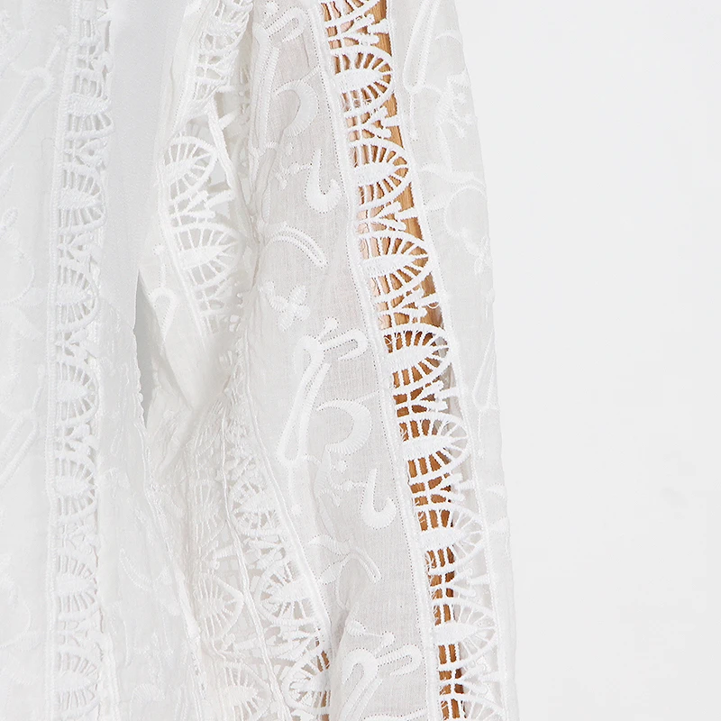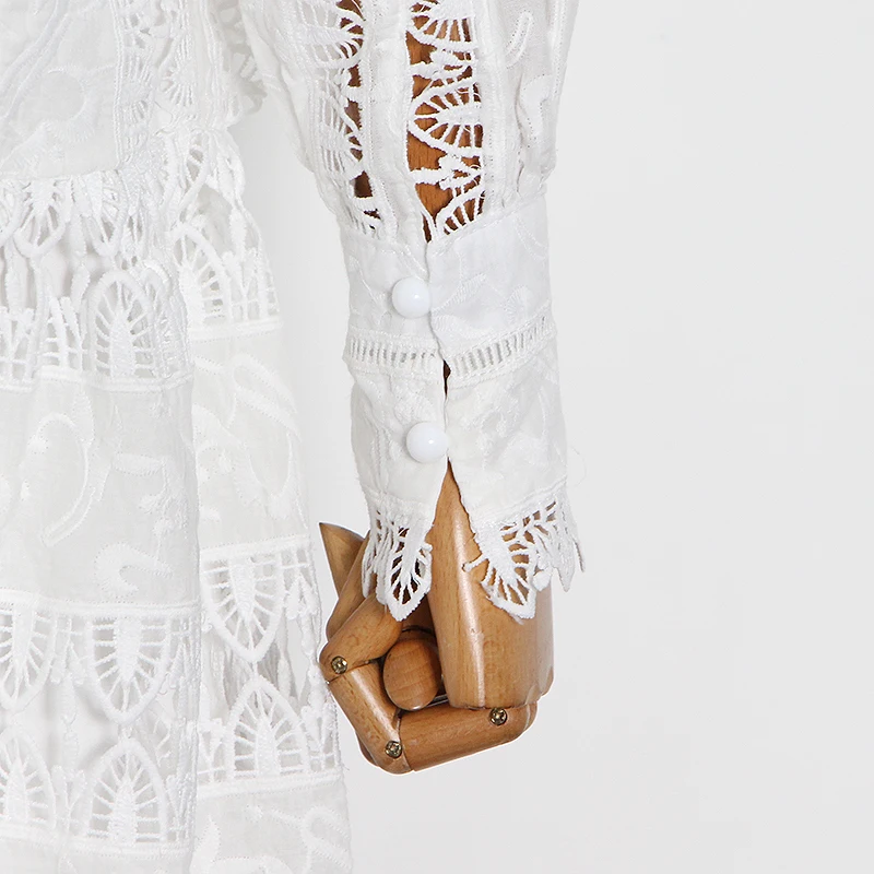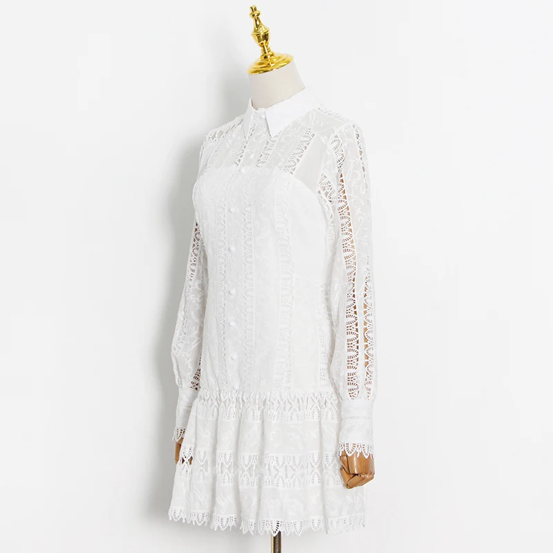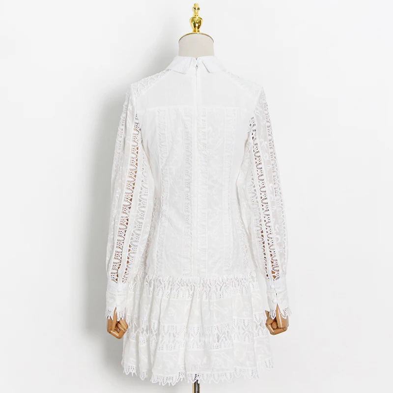TWOTWINSTYLEоднотонное платье с кружевной отделкой, с отворотом, фонариком, с длинными рукавами, с вырезами, мини-платье трапециевидной формы, в стиле пэчворк, из сетчатой ткани, новинка 2021 года, летняя одежда