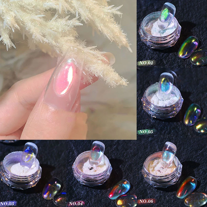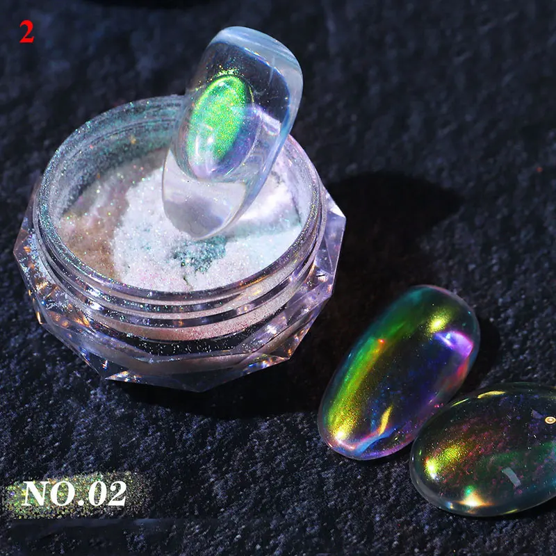 Радужная разноцветная зеркальная неоновая пудра Aurora, пыль, хамелеон, дизайн ногтей, Хромовый пигмент, окуниваемая пудра, украшение