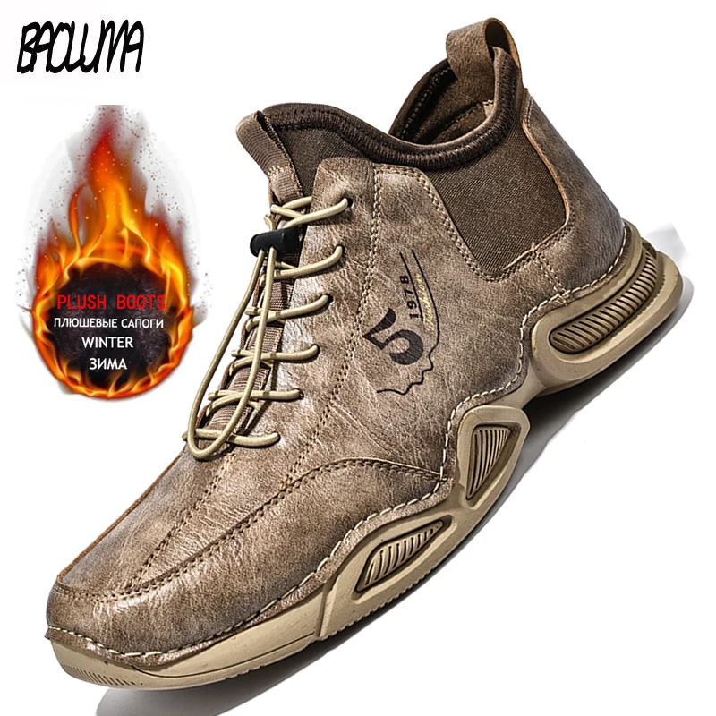 Мужские зимние ботинки, толстый плюш, теплые кожаные ботильоны, мотоциклетные ботинки ручной работы, уличная мужская обувь