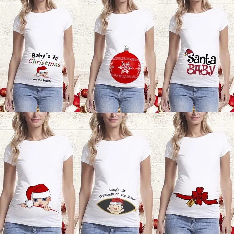 Рубашка для беременных Рождественский Топ для женщин Футболка для б...