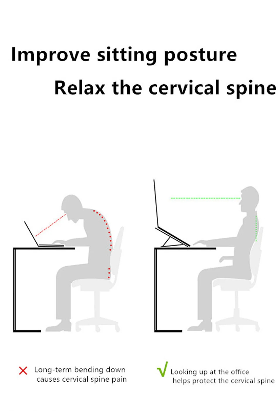 Ультратонкая Складная регулируемая подставка для ноутбука с 8 углами, эргономичный угол высоты защищает пользователя и # x27;s шейного отдела позвоночника и здоровья глаз.Алюминиевый сплав прочный, несколько силиконов обеспечивают лучшую защиту для вашего оборудования, специальный дизайн rEserve компьютерный кабель полый для удобного хранения.Подходит для ноутбука 11-17 дюймов. Лучший выбор для повседневной работы и деловой поездки.