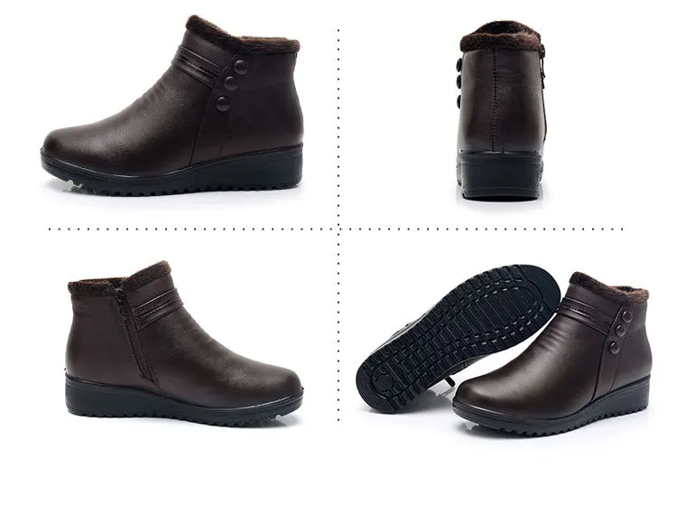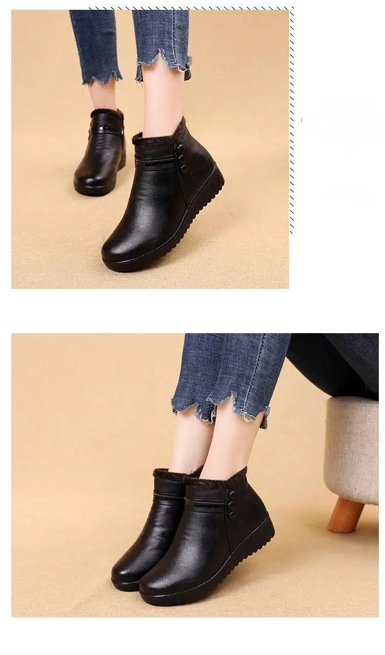Женские кожаные ботинки на танкетке, ботильоны с плюшевой подкладкой, большой размер 35-42, для осени и зимы, 2021