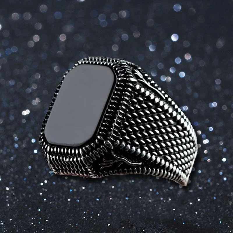 Модное мужское кольцо с квадратным черным ониксом серебряные кольца...