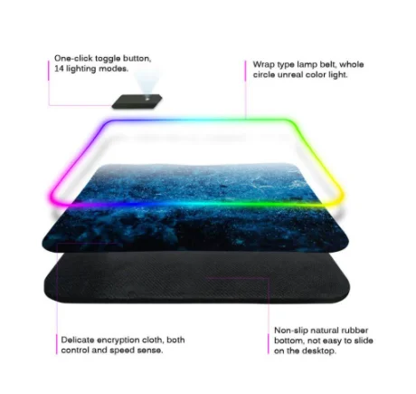 Размер изделия: Наш коврик для мыши имеет три режима. Светящиеся и несветящиеся режимы. Также есть режимы alien. Попросите клиента выбрать вариант покупки.