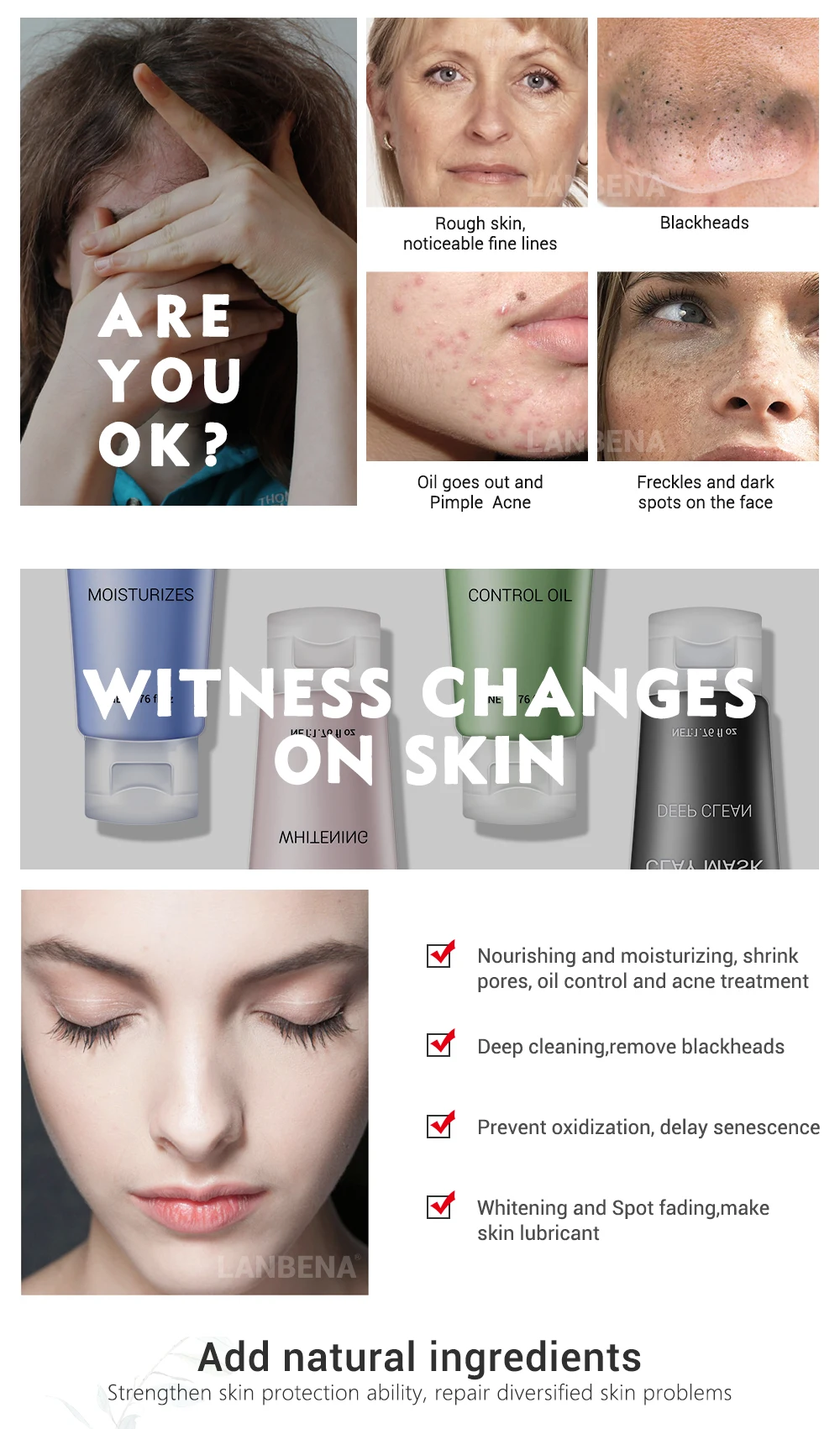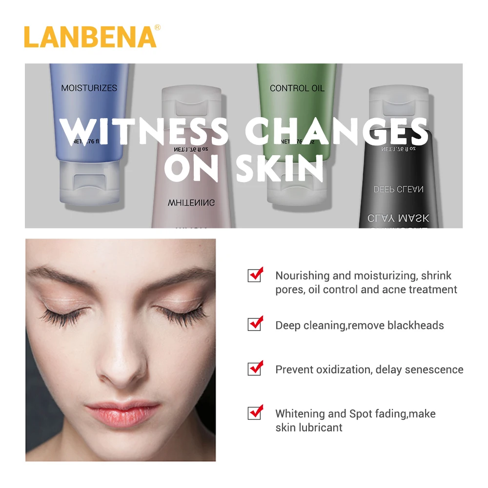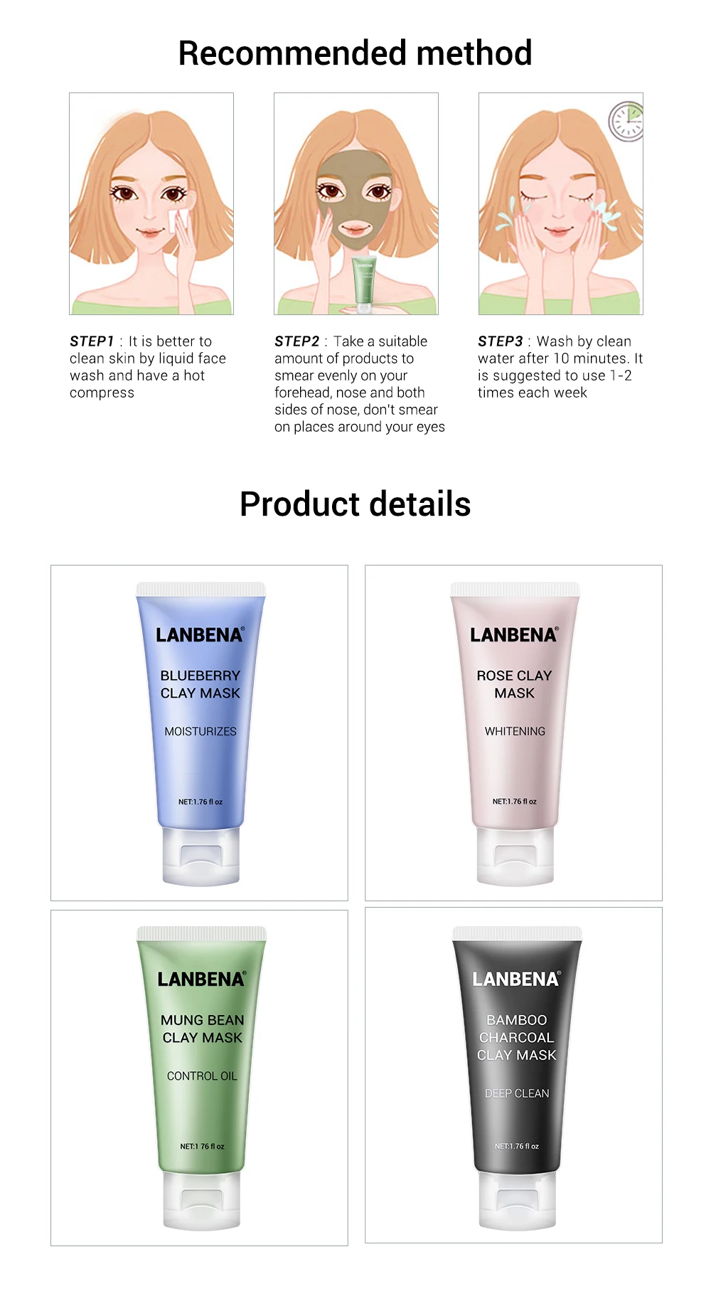 Маска для лица LANBENA из бамбукового угля с бобов мунг, абсорбция бамбукового угля, отбеливание кожи, контроль жирности, лечение, сужение пор