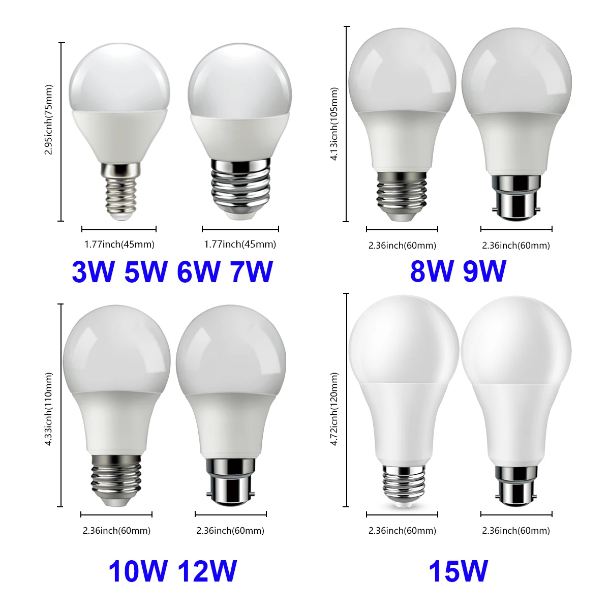 Светодиодные лампы E27 B22 220 В, реальная мощность 8 Вт 9 Вт 10 Вт 12 Вт 15 Вт, теплый белый, холодный белый свет, 6 шт.