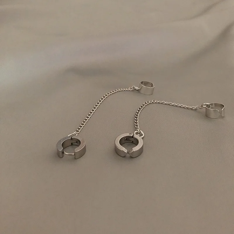 Женские серьги-цепочки в Корейском стиле, модные готические серьги-Клипсы из нержавеющей стали, 2021