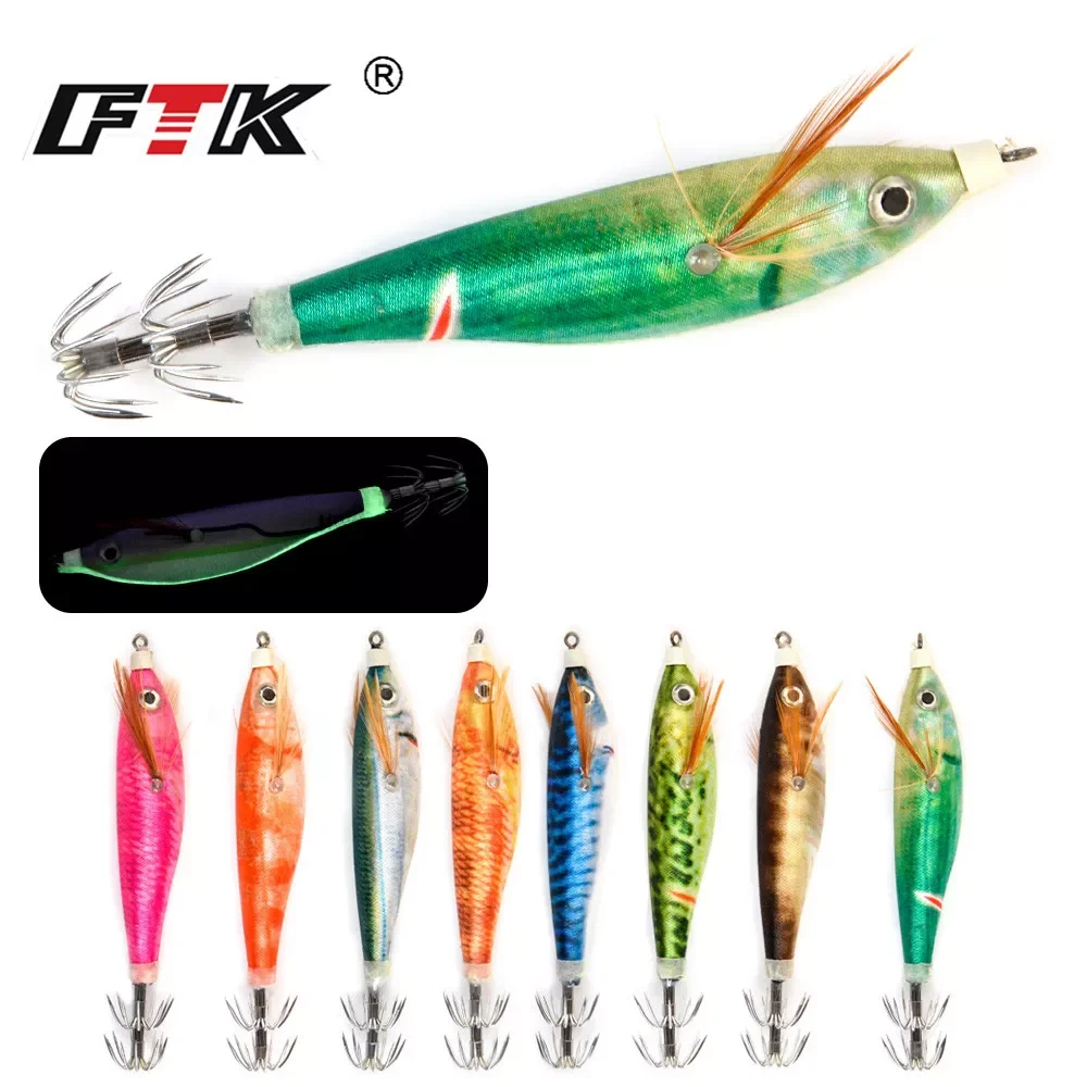 FTK 1 шт. рыболовный крючок для грузила 10 г8 см, светящийся крючок для кальмара, джиг для рыбалки, деревянная приманка для креветки, приманка для ловли морской рыбы, приманки для джиггинга