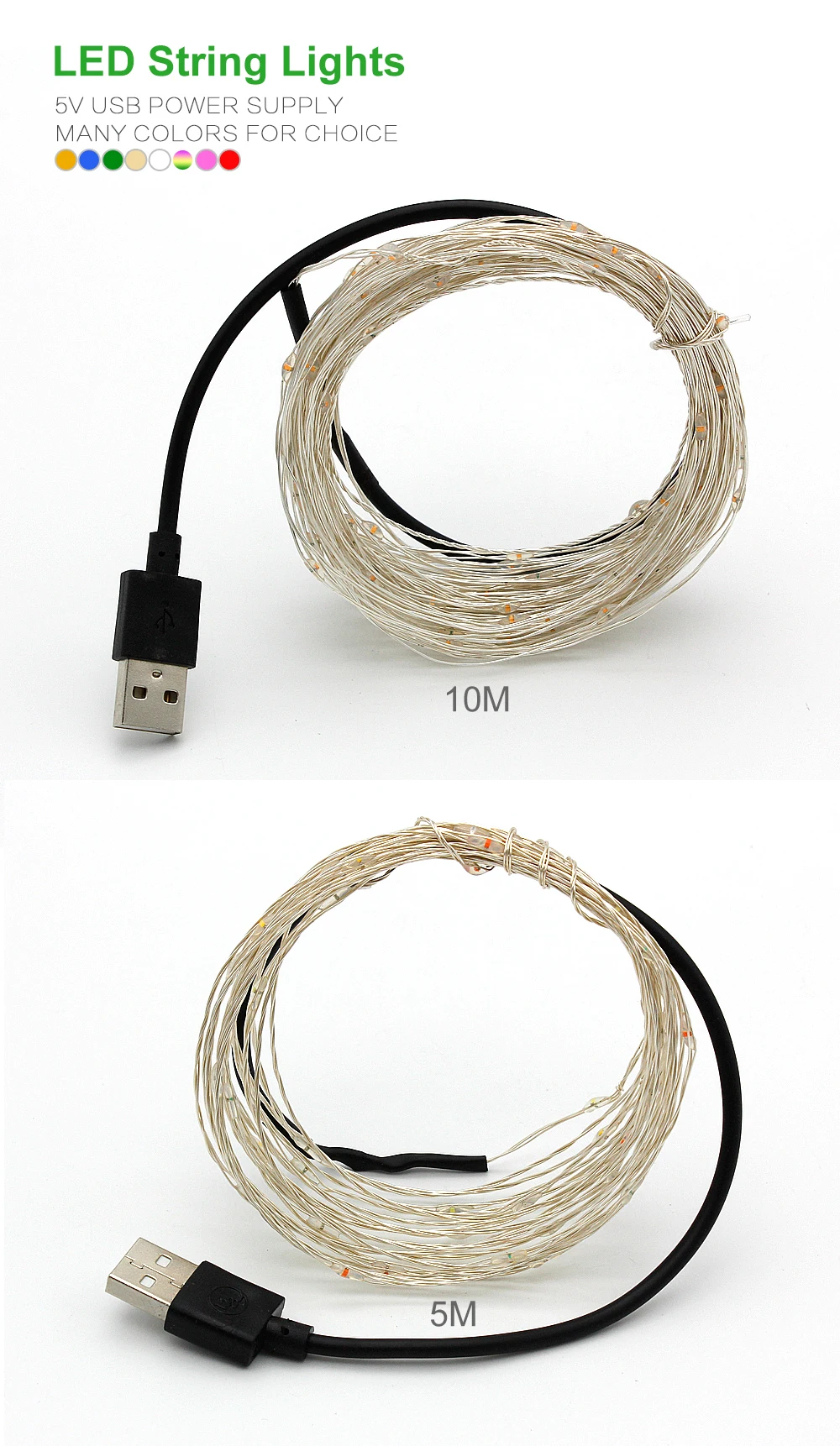 Гирлянда светодиодная с питанием от USB, 5 м, 50 светодиодов10 м, 100 светодиодов
