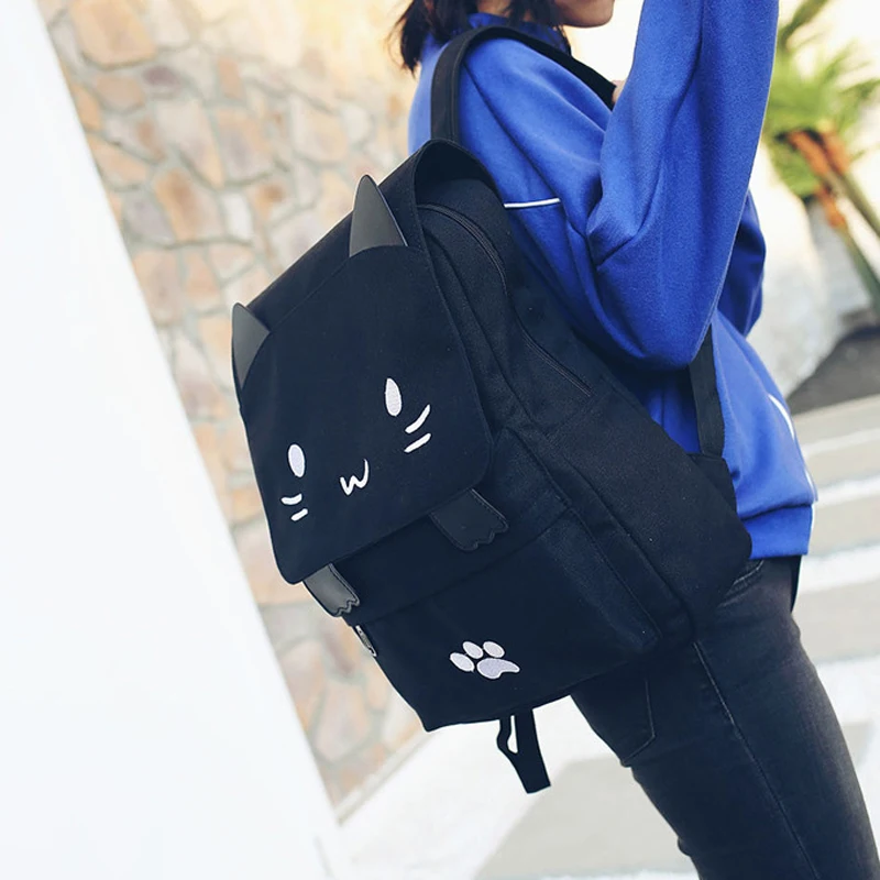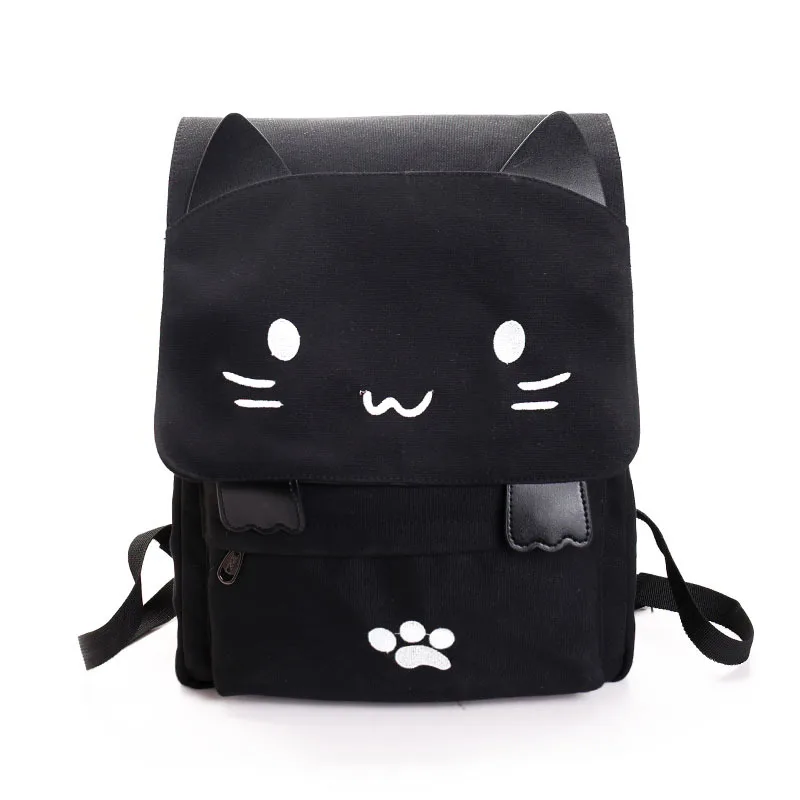 Милый рюкзак с вышивкой, с рисунком кота, с ушками, школьный рюкзак...
