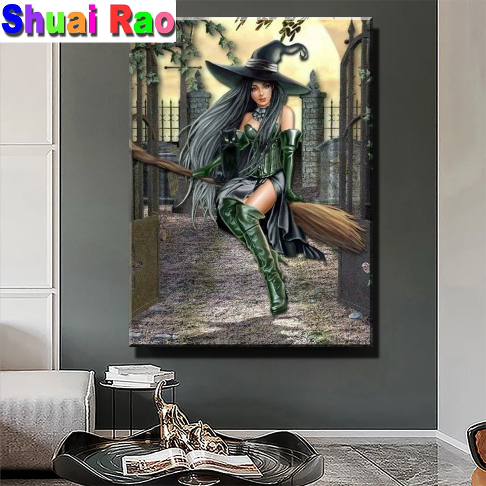 Алмазная живопись сделай сам, пейзаж ведьмы, 5D полноразмерная круглая Алмазная вышивка, мультяшная мозаика, вышивка крестиком, домашний декор, подарок для любимых