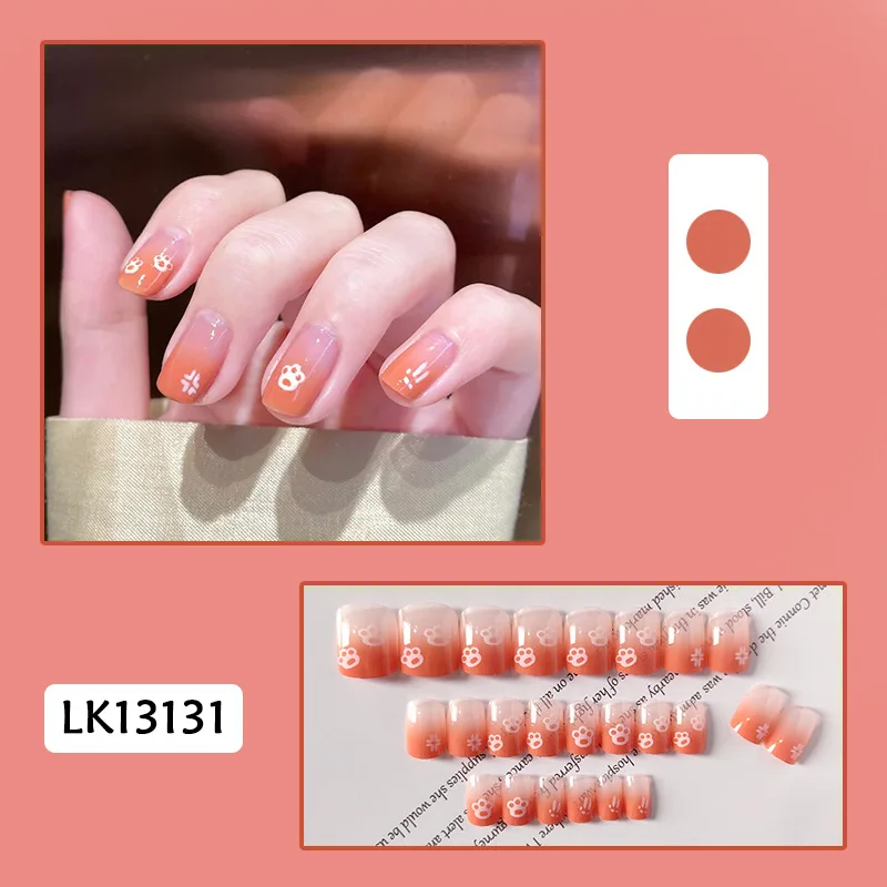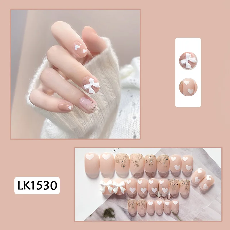 24 шт. короткие ногти для женщин простой градиентный лук жемчуг стиль Ins искусственные ногти акриловые квадратные полные накладные ногти