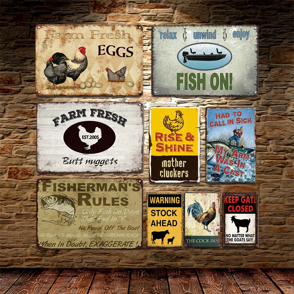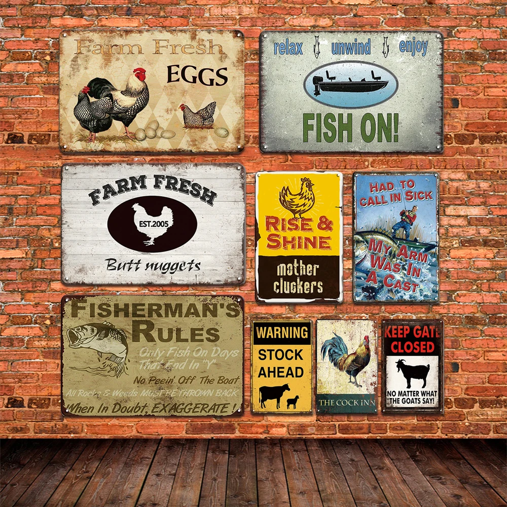 Винтажный металлический постер с изображением животных, жестяной знак в стиле ретро, декоративное украшение для комнаты, настенная пластина для рыбалки, домашний декор