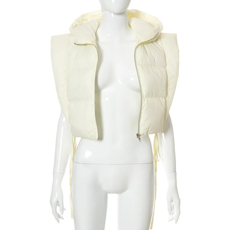 Укороченный пуховой жилет на молнии с капюшоном, куртки 2021, зимни...