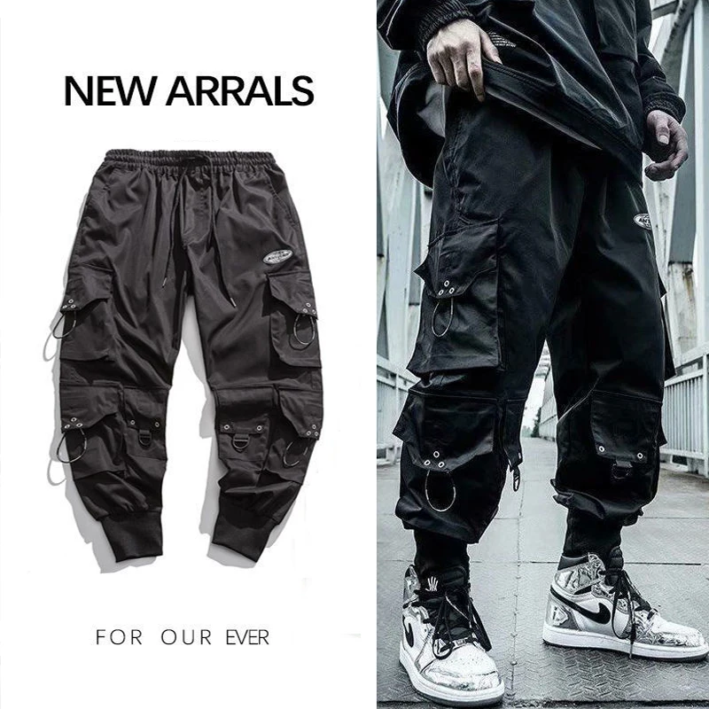 Универсальные брюки-карго для парашютеров, Мужская одежда, уличная одежда, повседневные брюки большого размера со множеством карманов, мужские трендовые свободные брюки в стиле хип-хоп
