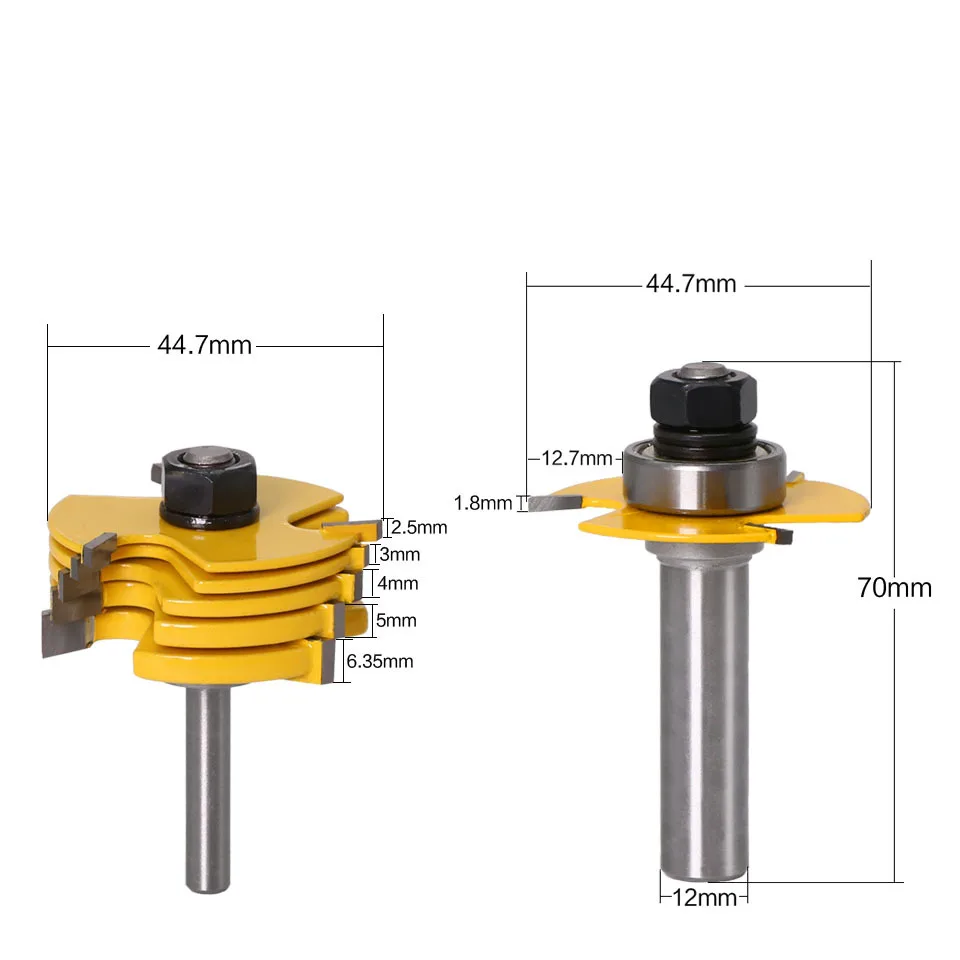 Набор фрез для деревообработки, комплект из 2 пазовых насадок 6 предметов, зубчатые насадки с хвостовиком 8 и 12 дюймов, для работ по дереву