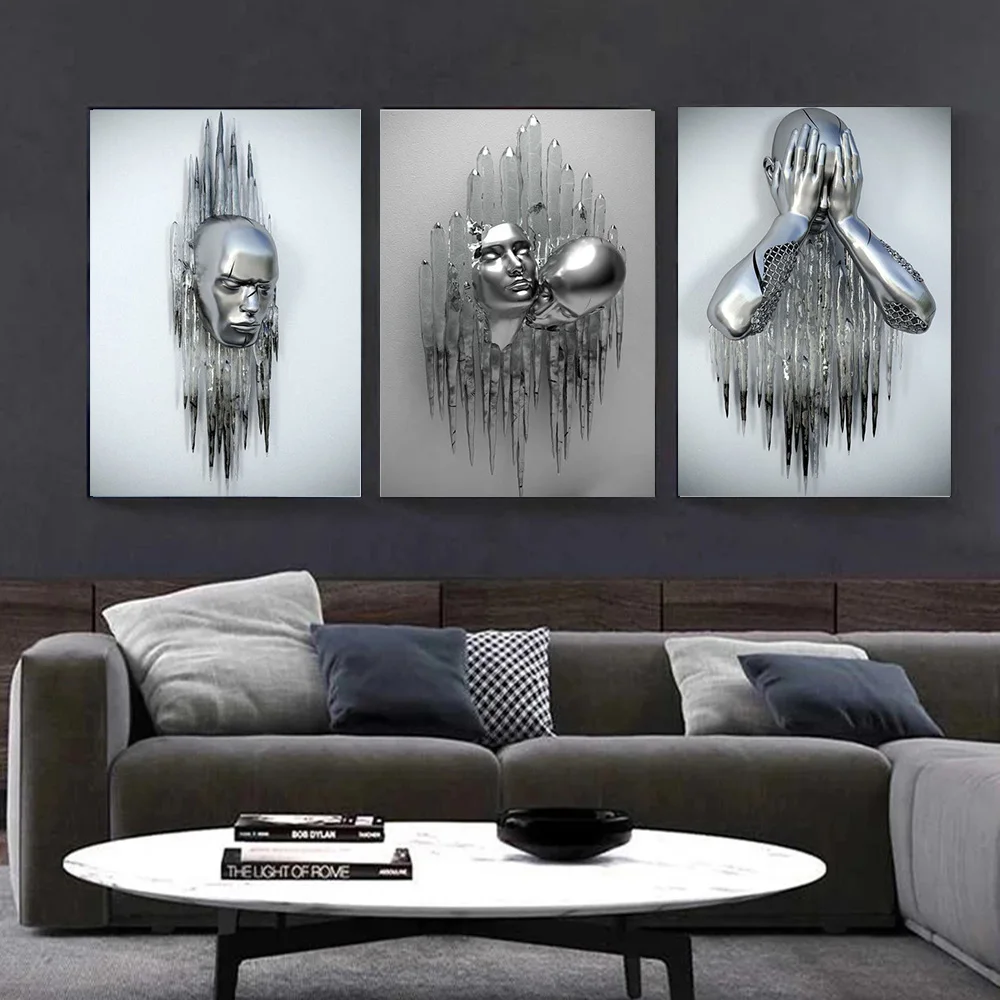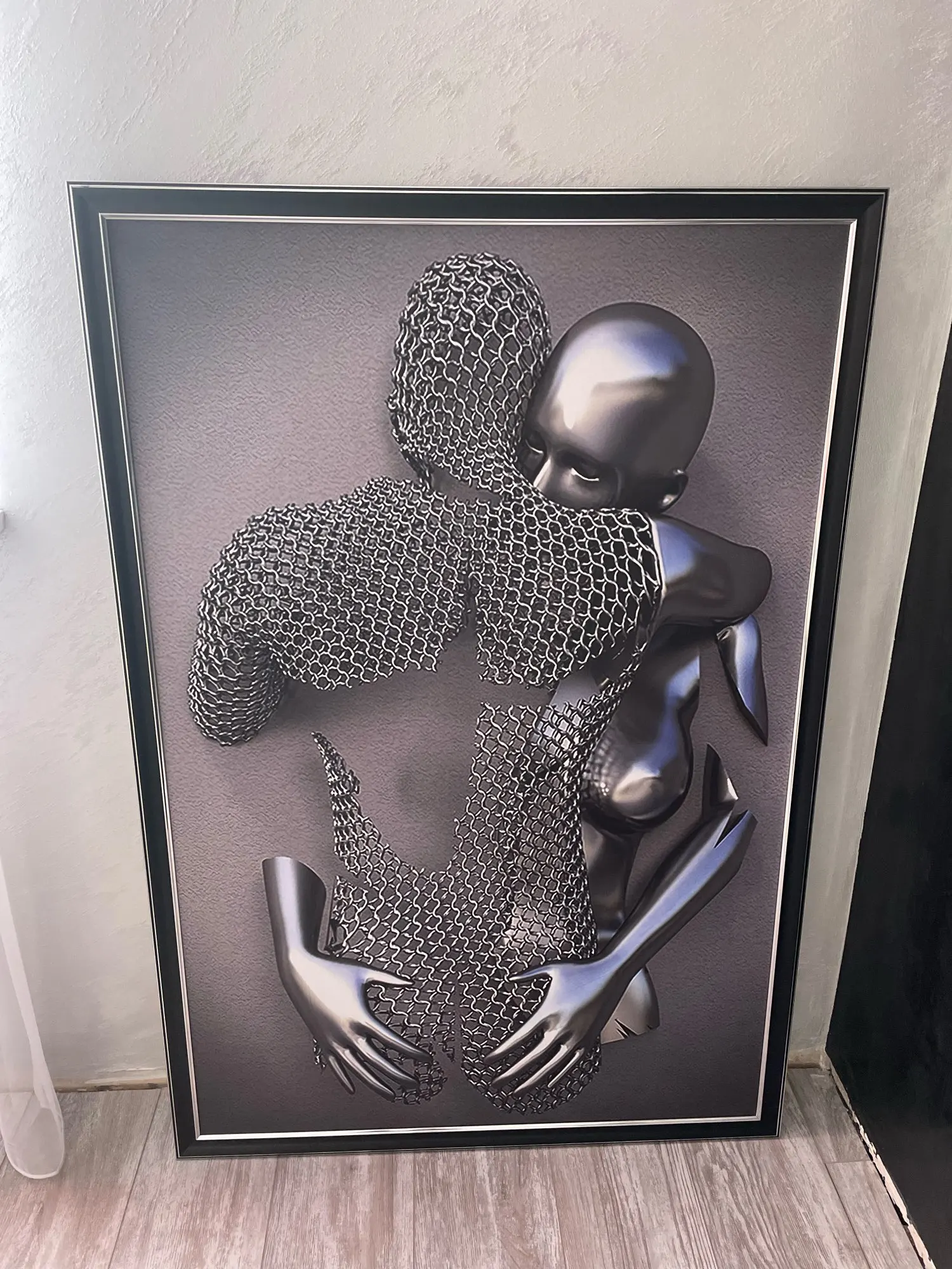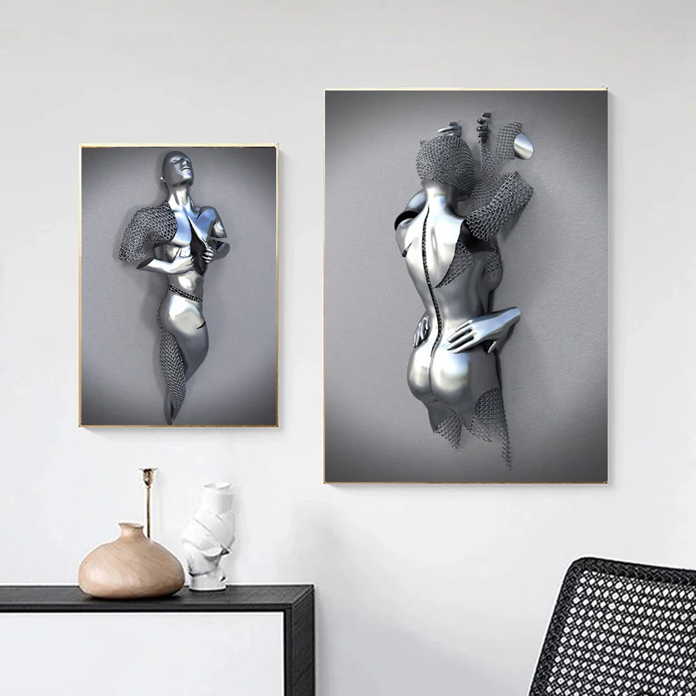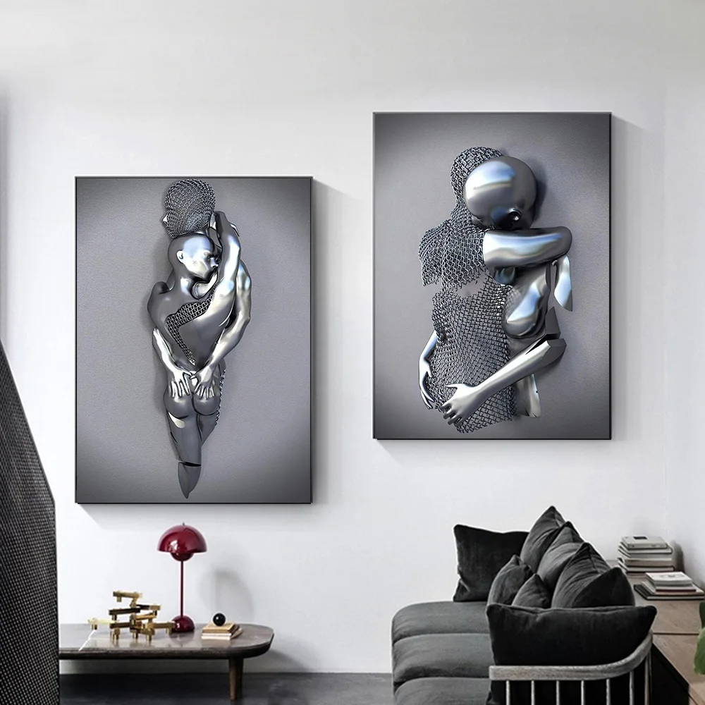 Абстрактная Металлическая Статуя пар Картина на холсте Романтический постер и печать настенные картины современная гостиная домашний декор квадраты