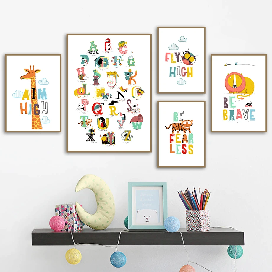 Картина на холсте Алфавит слон жираф панда тигр