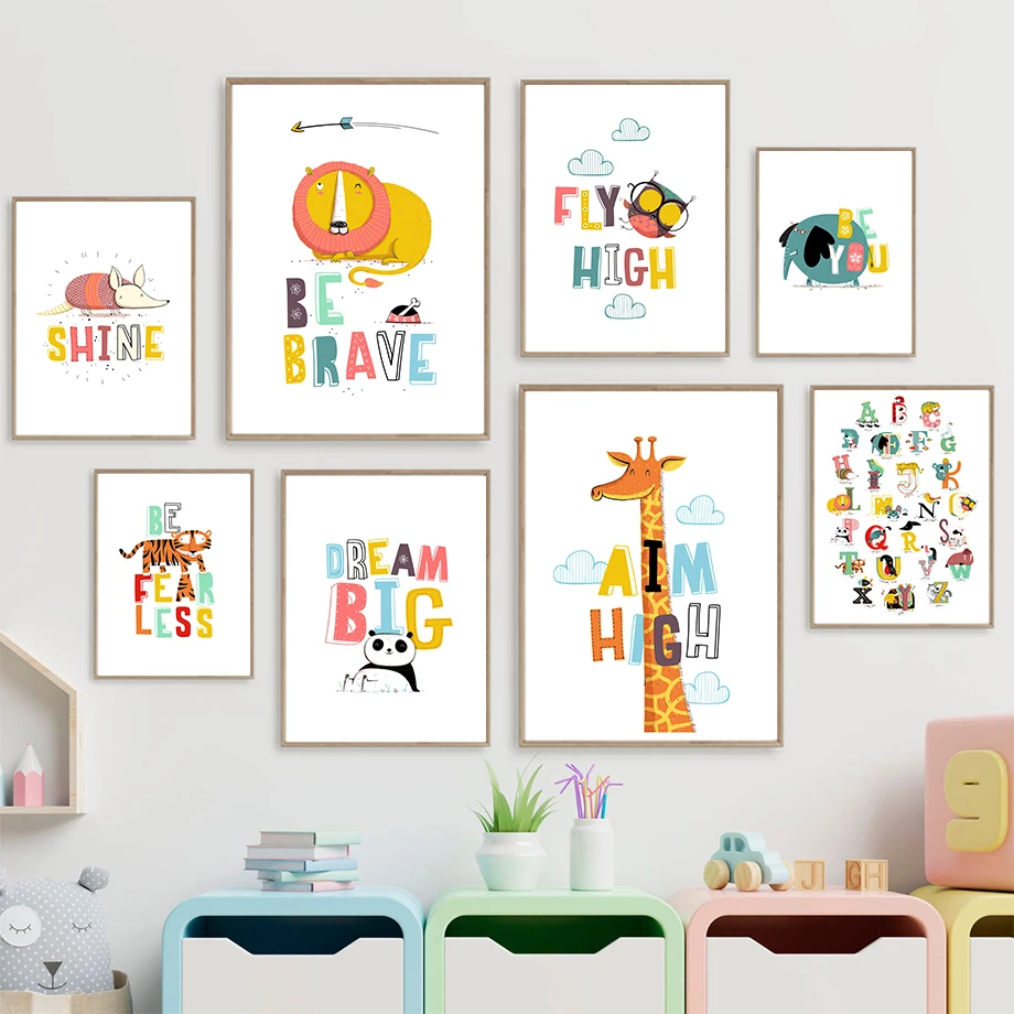 Мультяшная тигра льва панды коала настенная Картина на холсте сканд...