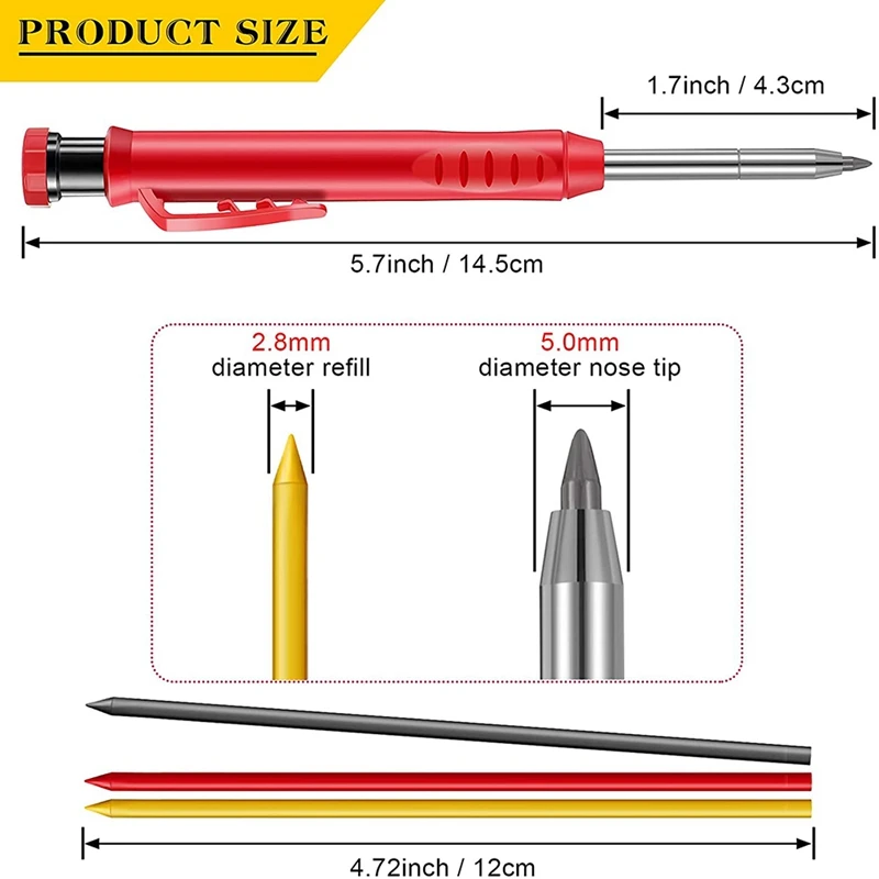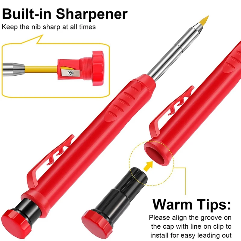 Посылка: набор деревообрабатывающих карандашей содержит 3 части плотника, механические карандаши и 6 пачек карандашей 3 цветов, соответственно темно-серый, желтый и красный, каждая коробка из 6 заправок, достаточное количество и разные цвета для удовлетворения ваших разнообразных потребностей в маркировке деревообработки в течение длительного времени.Практичный и портативный: твердый механический карандаш гуманизирован с большим диаметром, чтобы улучшить ощущение сжатия, который не будет легко выскальзывать из пальцев; С дизайном зажима ручки, наши карандаши для рисования плотника можно легко повесить в кармане, удобно носить с собой и не легко потерять.Встроенная точилка для карандашей: Этот деревообрабатывающий маркировочный карандаш оснащен точилкой для карандашей в конце карандаша, который может обеспечить удобный и быстрый способ держать карандаш острым и точным, прост в использовании в любое время.Рисунок с глубоким отверстием: карандаш mechanicala с глубоким отверстием разработан с тонким кончиком тонкой точки, чтобы достичь глубокого положения, в которое другие традиционные карандаши не могут войти, позволяет точно рисовать в отверстии и других узких областях.Повышение эффективности работы: карандаши для маркировки рисунков обеспечивают практический способ для плотников рисовать Точные линии и отметки на дереве или металле, удобно рисовать в крошечном отверстии, что может повысить эффективность работы.Гладкий рисунок: стержни для карандаша подходят для рисования на шероховатых и гладких поверхностях с плавными линиями, оснащены точилкой для карандашей на конце инструмента механическим карандашом, не легко терять и поддерживать точность.Примечания:Острые предметы, пожалуйста, держите подальше от ваших детей.Цвет: красныйМатериал: АБС-пластикПосылка:3 * автоматические деревообрабатывающие карандаши12 * темно-серый пополнение12 * желтый запасной свинец12 * красный запасной свинецТолько вышеуказанная посылка, другие товары не включены.Примечание: светильник и различные дисплеи могут привести к тому, что цвет товара на картинке немного отличается от реального. Допускается погрешность в измерениях +/- 1-3 см.Твердые столярные карандаши