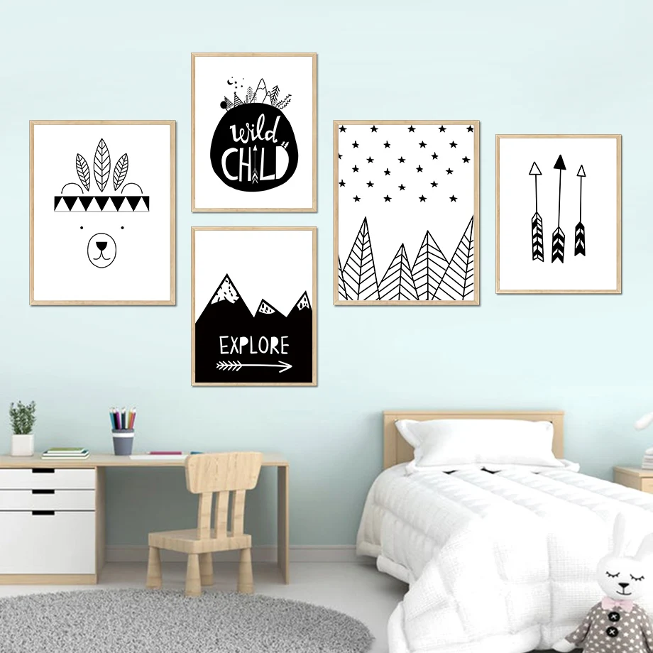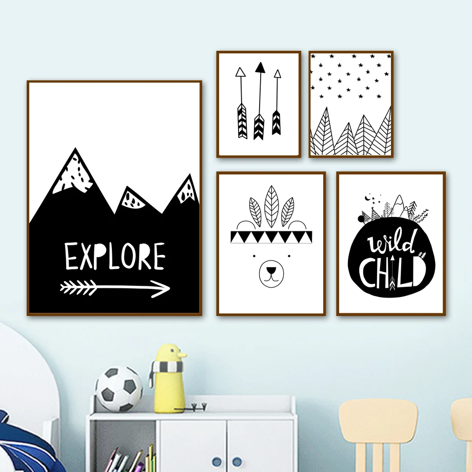Детская картина стрелка исследовать детскую фотографию на холсте скандинавские плакаты и принты черные белые настенные картины для декора детской комнаты