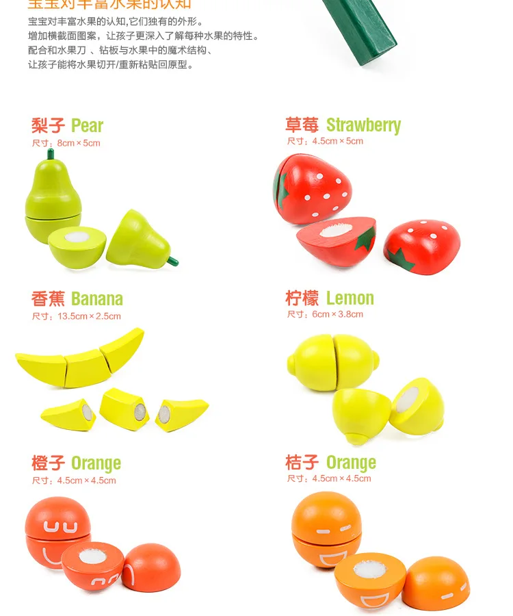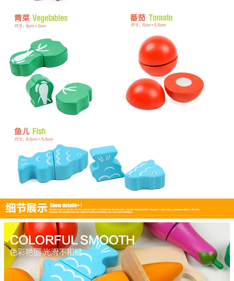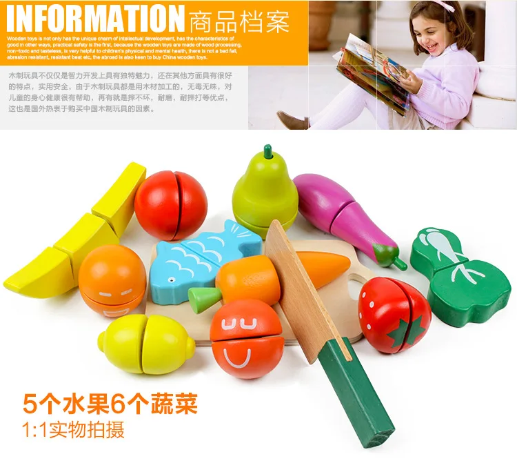 Деревянные имитирующие фрукты и овощи нарезают, чтобы увидеть, нарезают до радости barreled детей раннего образования дома кухня игрушки Дерево