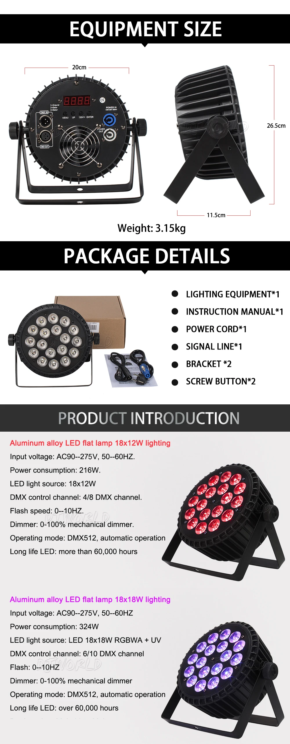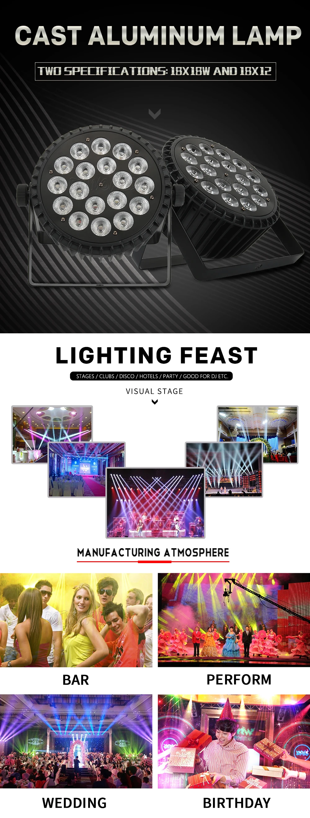 Плоский светодиодный светильник из алюминиевого сплава, 2 шт.лот, 18x18 Вт, RGBW, DJ, Par Банки, Dj, промывка, сценическое освещение DMX 512, Dj, дискотека вечерние вечеринка, ночной клуб