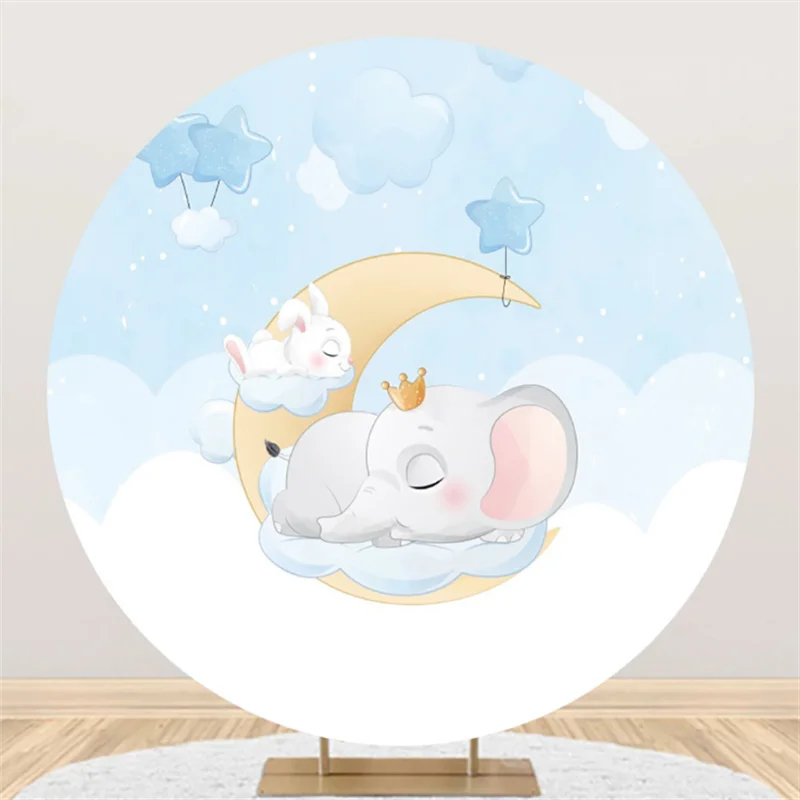 Фон для фотосъемки в день рождения с изображением круга милого кролика слона для вечеринки в честь будущей мамы эластичный круглый чехол с подставкой баннер для студийной съемки