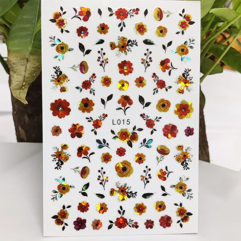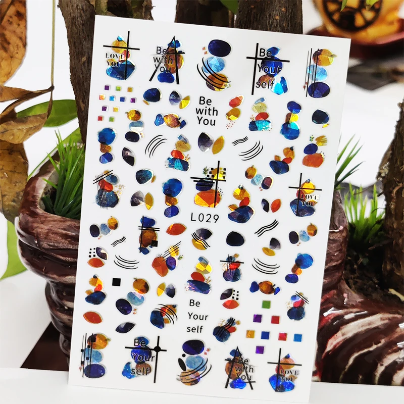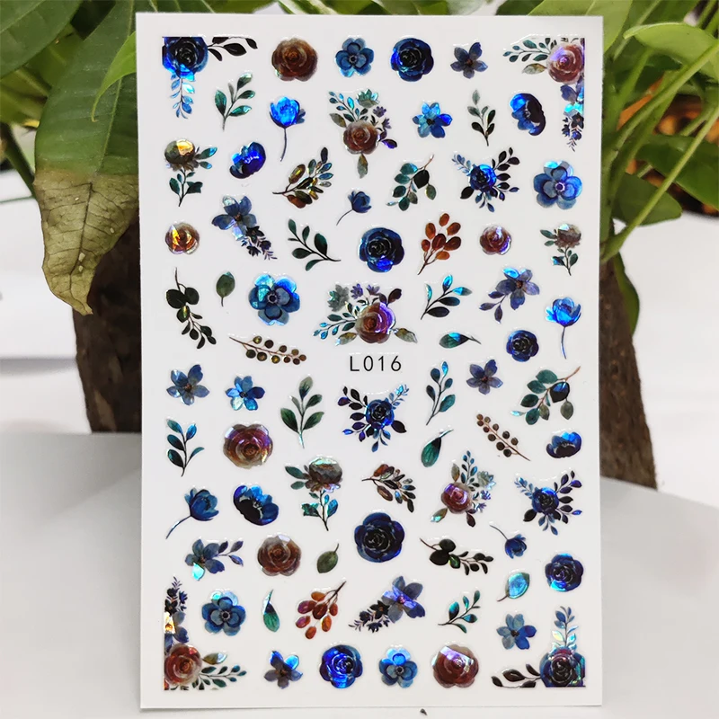 3D наклейки для ногтей, водостойкие блестящие наклейки, наклейки для ногтей, линия лепестков, букв, фруктов, украшение для ногтевого дизайна, Аврора, серебристый дизайн