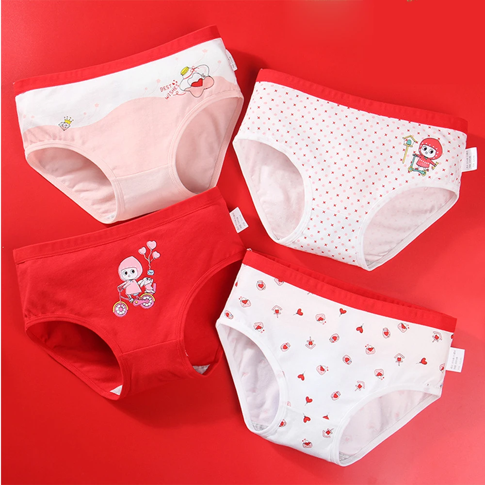 Трусики для девочек, детское хлопковое нижнее белье, детские трусы, короткие шорты с милым рисунком красного цвета, 3 шт.лот