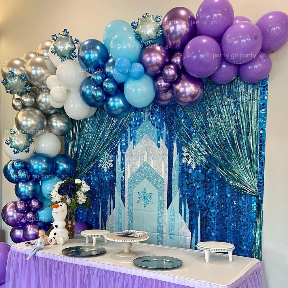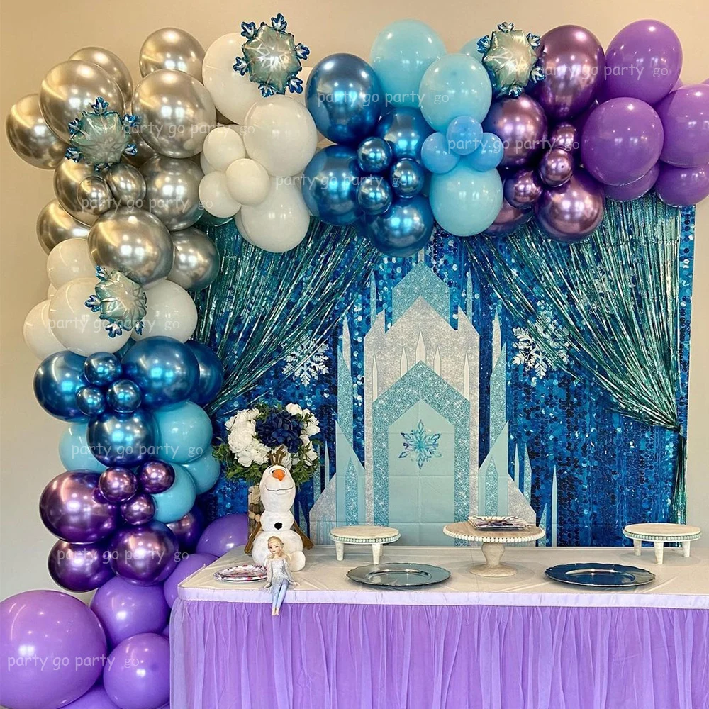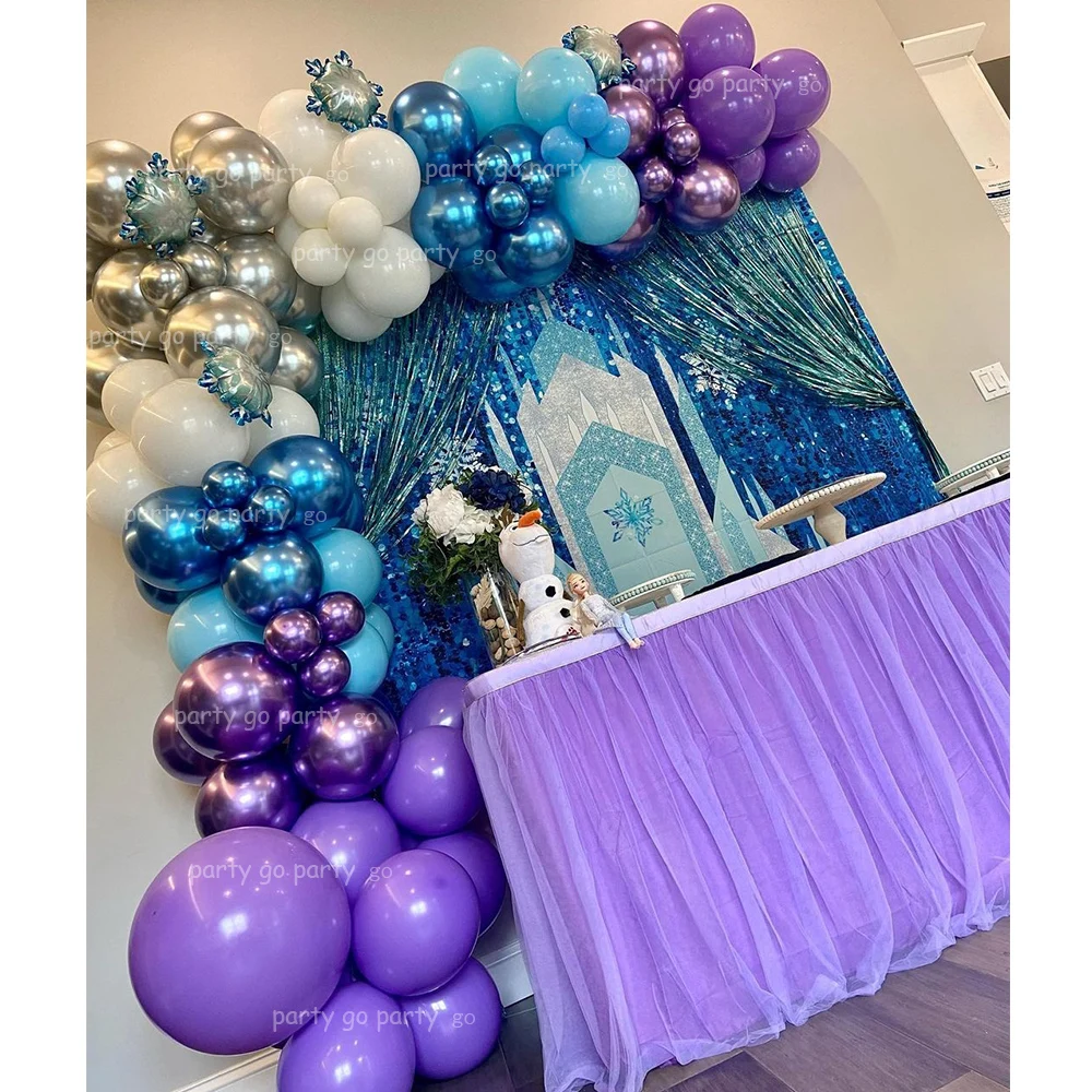 122 шт. мини-гирлянда со снежинками и воздушными шарами, арка, металлические синие и фиолетовые шары, ледяная Снежная королева, домашний декор для вечеринки, рождественские товары