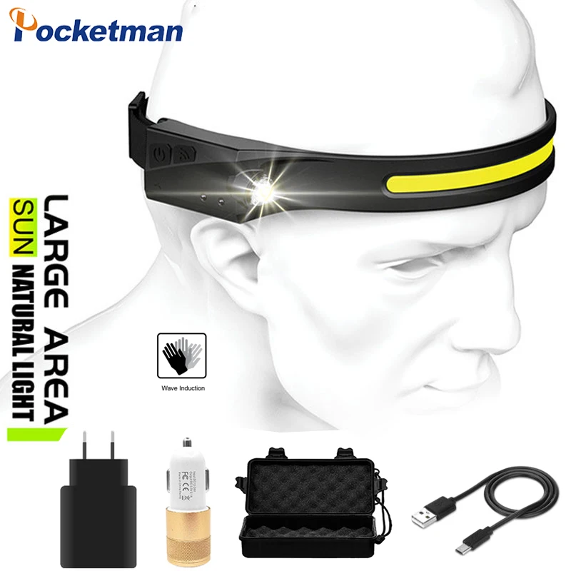 Налобный фонарь XPE + COB со встроенным аккумулятором и зарядкой от USB, 5 режимов работы