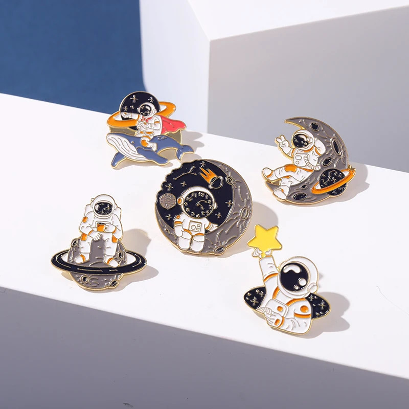 Брошь с эмалью, в виде астронавта и планеты, Вселенной, планеты, ракеты, Кита, звезды, Луны, галактики, металлическая брошь, подарок для любителей космоса
