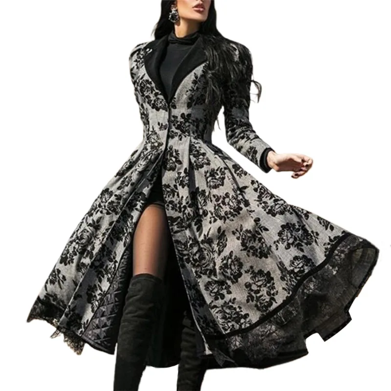 Средневековый Косплей Костюм Кружева Цветочная вышивка черный с дли...