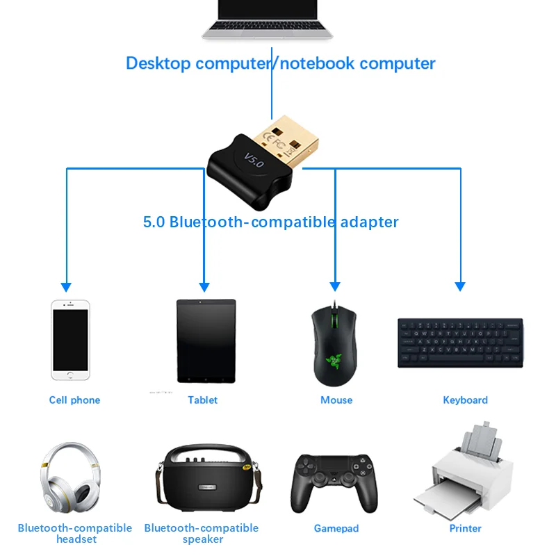 Оригинальный Usb Bluetooth-адаптер 5,0 для передачи аудиофайлов на ПК, мини-компьютер, ноутбуки, рецептор, USB-адаптер, Bluetooth 5 передатчик