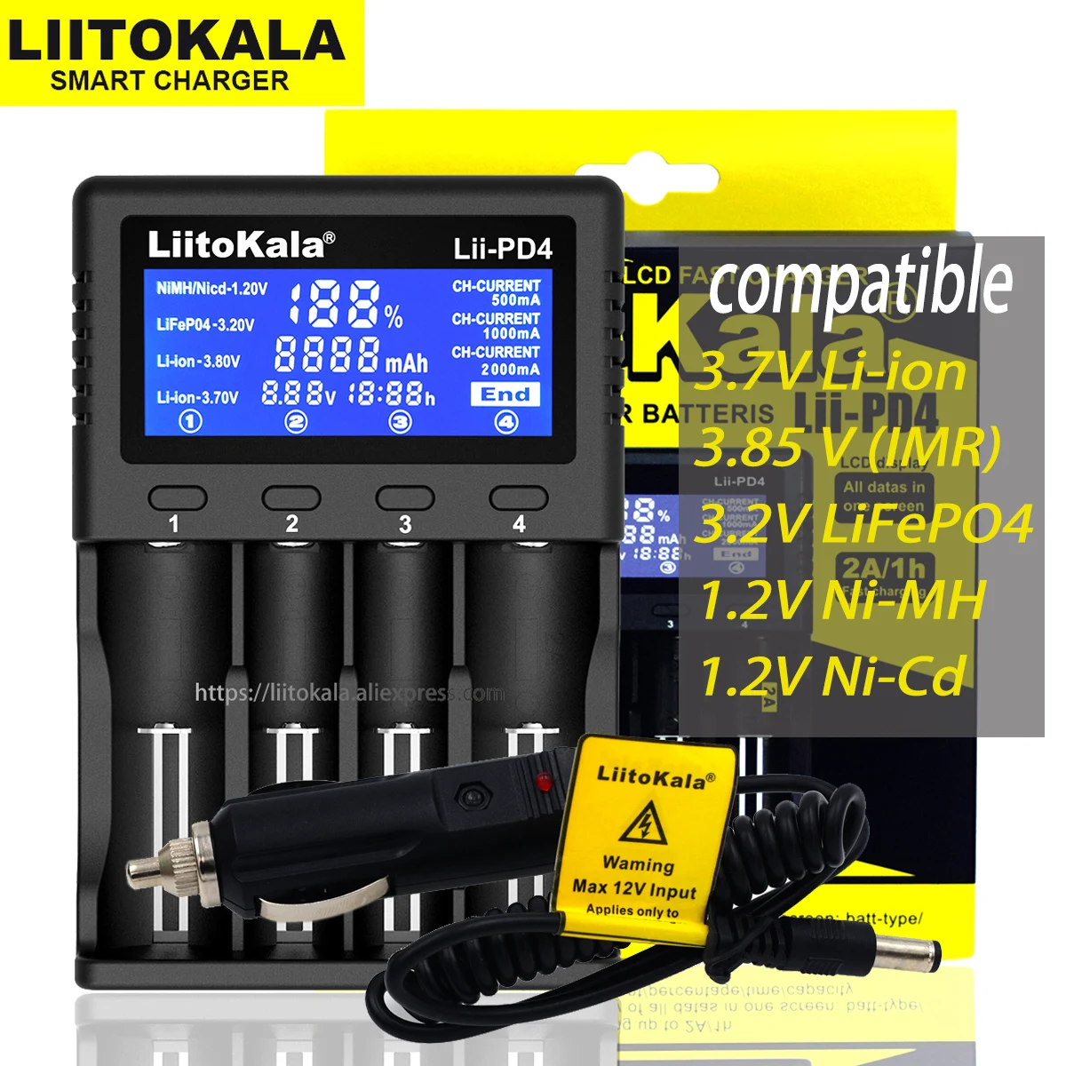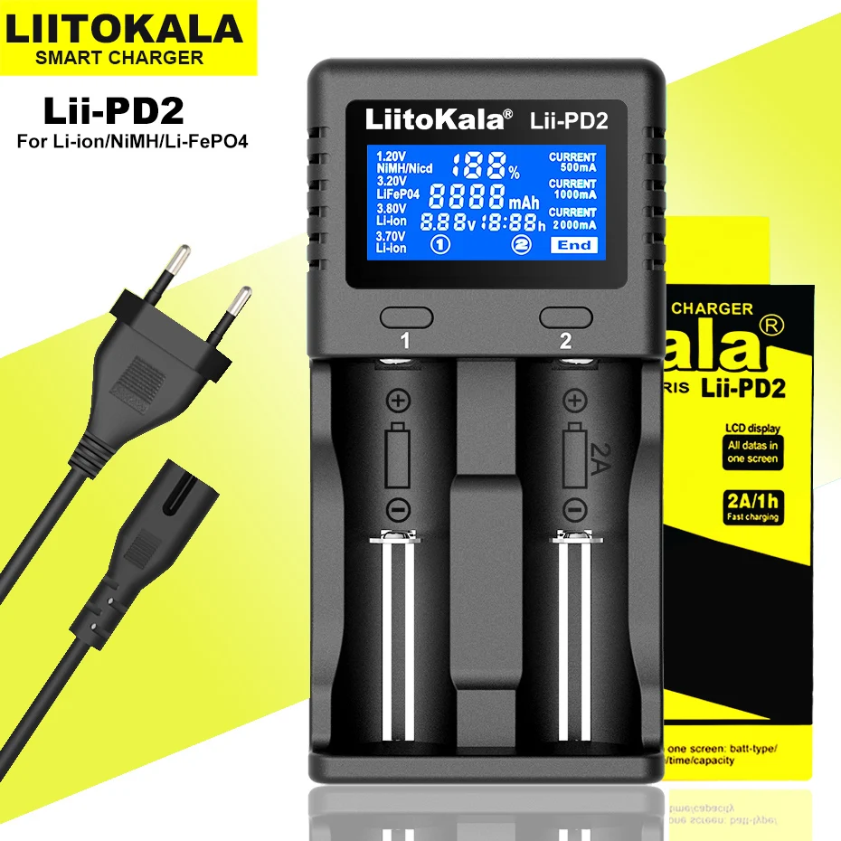 Liitokala Lii-PD4-PD2 LCD 3,7 V1,2 V NiMH 18650 18350 18500 21700 2...