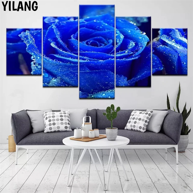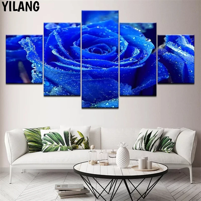 Картина Hd Печать на холсте 5 панелей благородные темно-синие розы ...