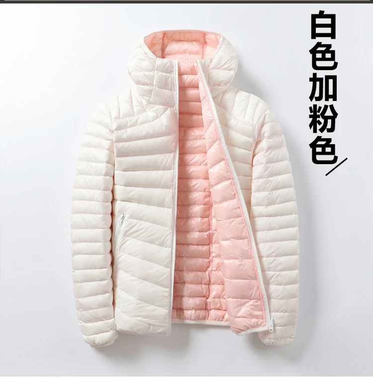 Куртка женская Ультралегкая, тонкий Двусторонний пуховик с белым ут...