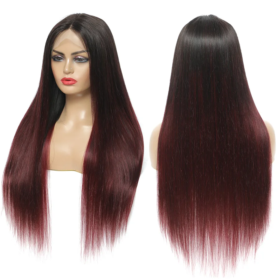 Бордовый 99J парик на сетке спереди, цветной красный парик 1B 99J, парик из человеческих волос с эффектом омбре, парик из прямых человеческих волос на сетке спереди, парики для женщин RXY