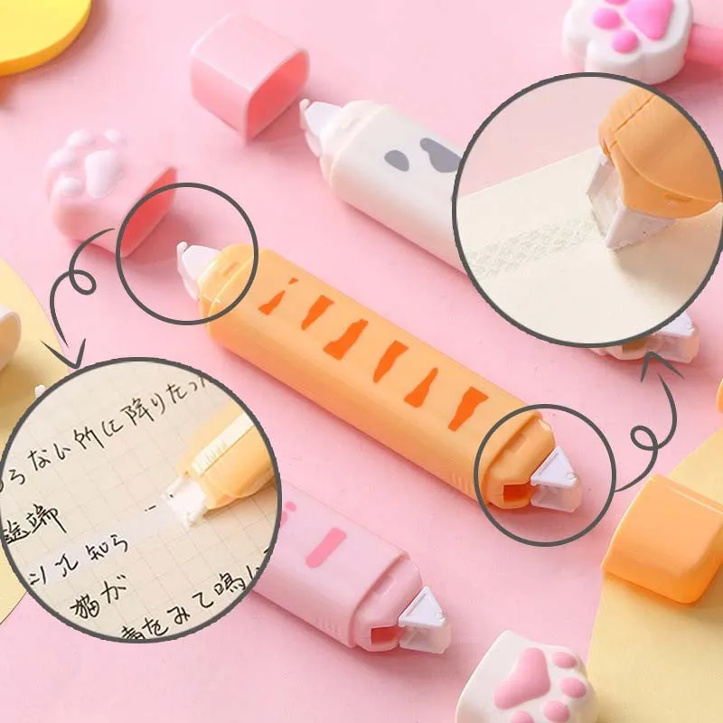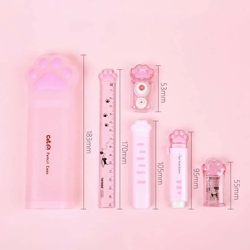 Набор канцелярских принадлежностей Kawaii в виде кошачьей лапки, креативная точилка для карандашей, ластик, Корректирующая лента, чехол для ручки для детей, школьные принадлежности, подарки